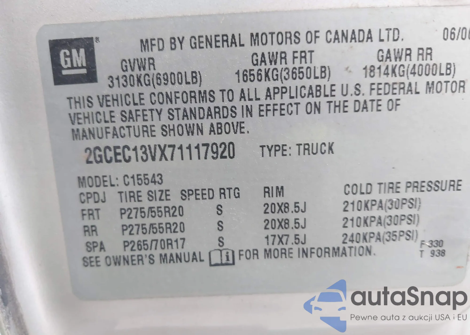 • VIN 2GCEC13VX71117920