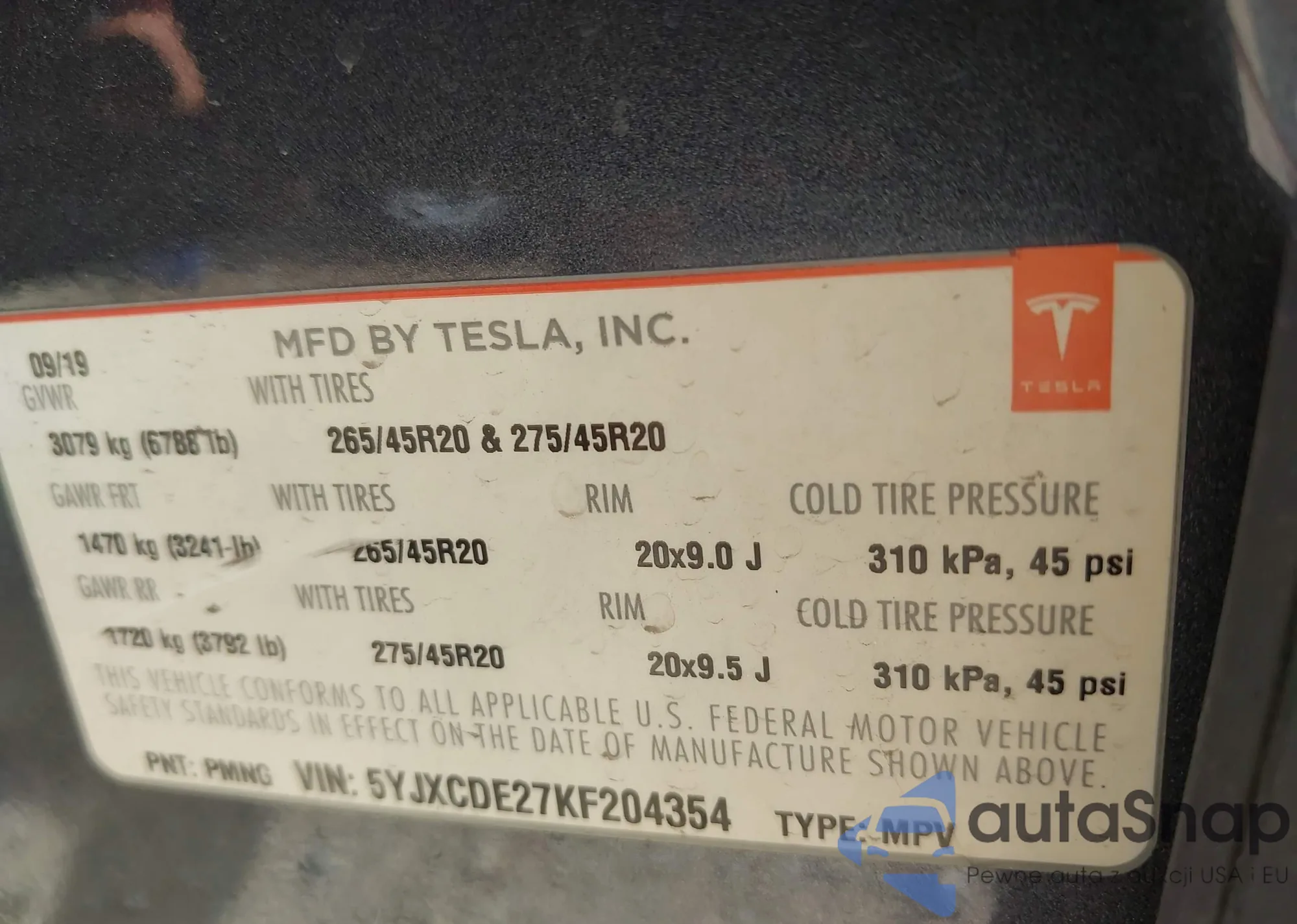 • VIN 5YJXCDE27KF204354