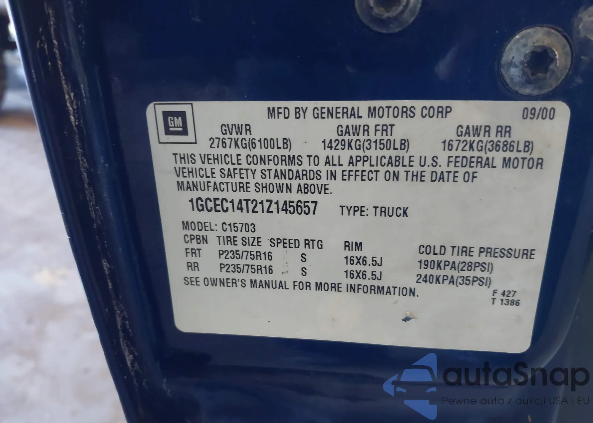 LOT: 42005890 VIN: 2GCEC13VX71117920