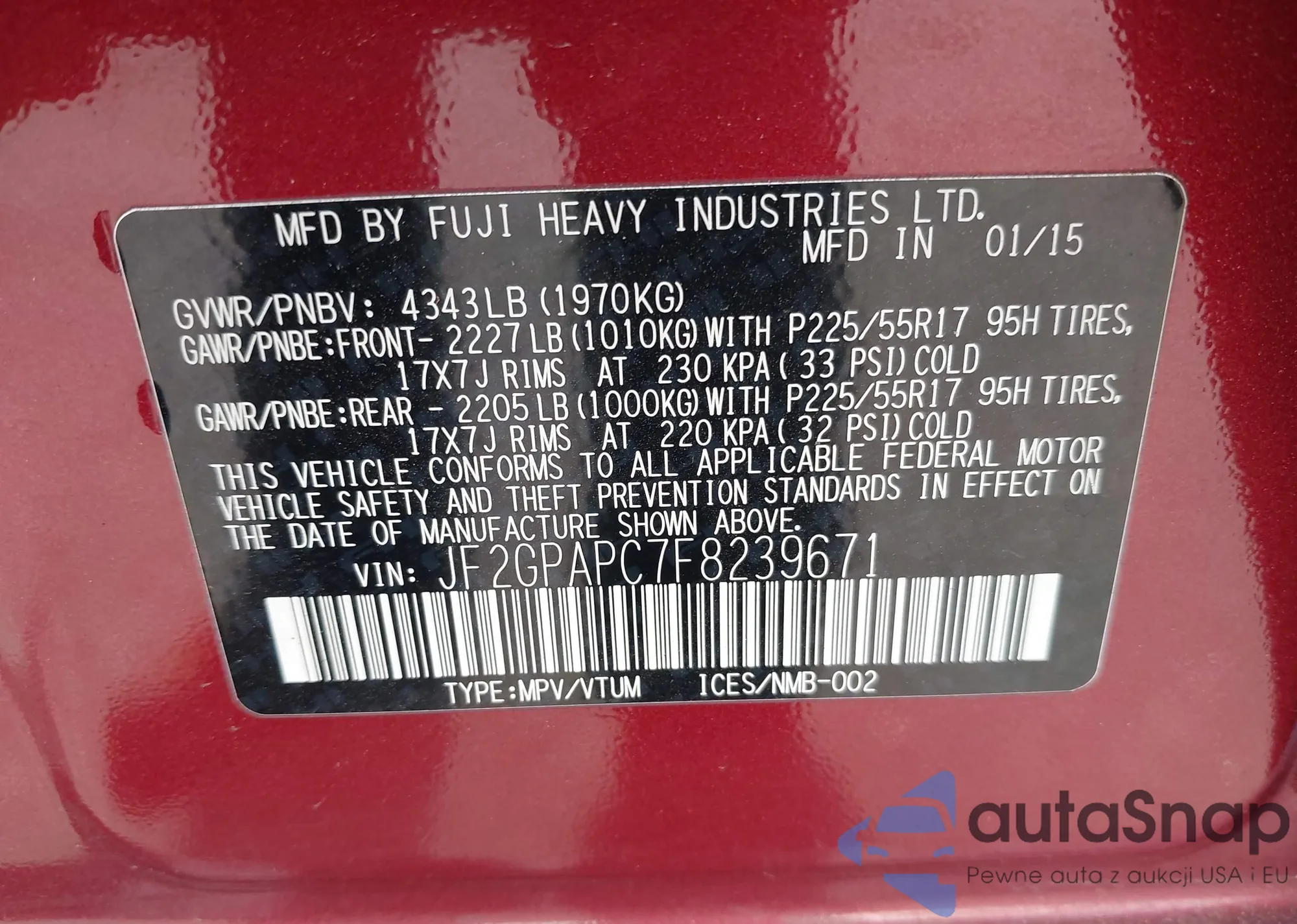 • VIN 5FNRL5H46FB032366