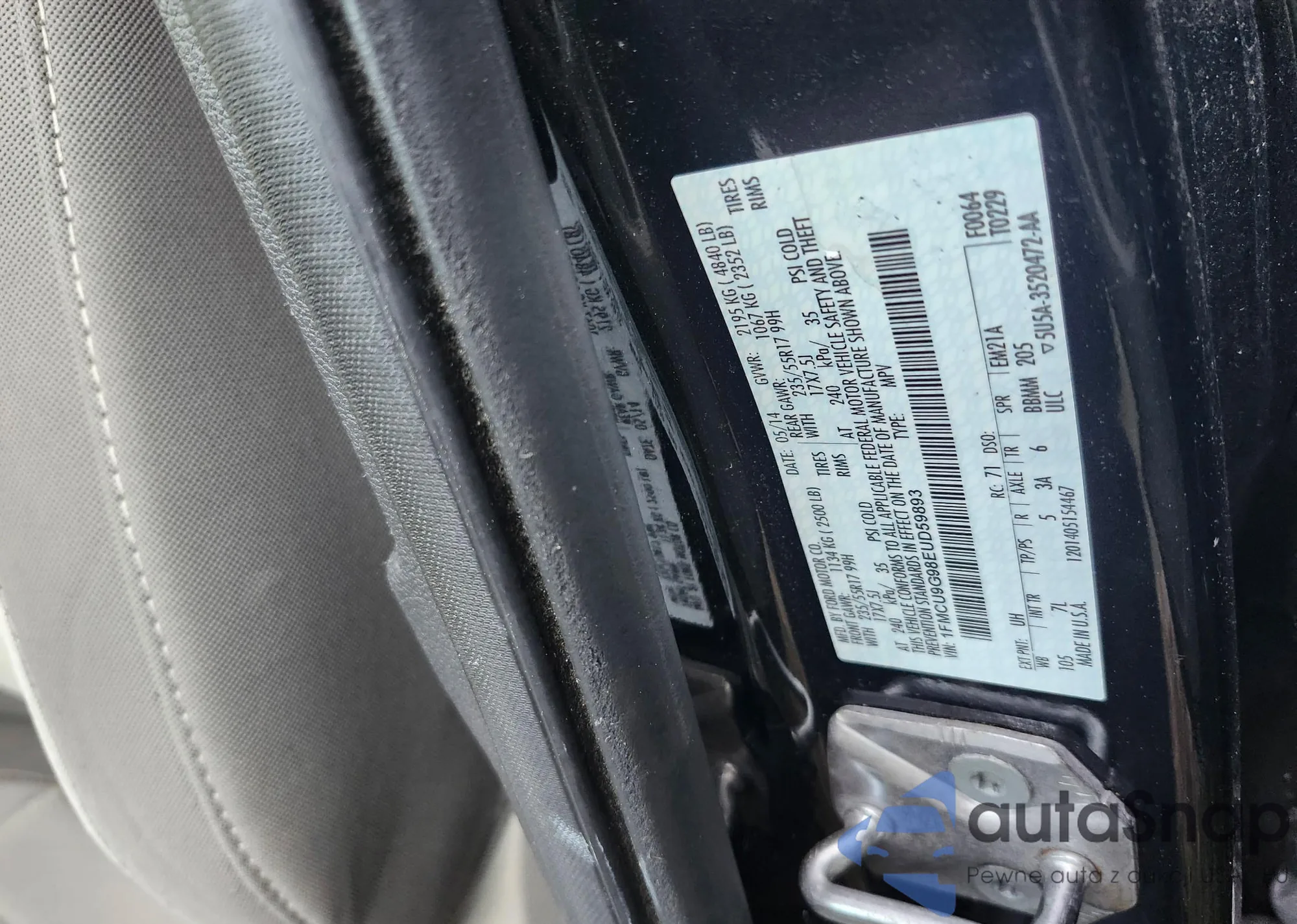 • VIN 1FMCU9G98EUD59893