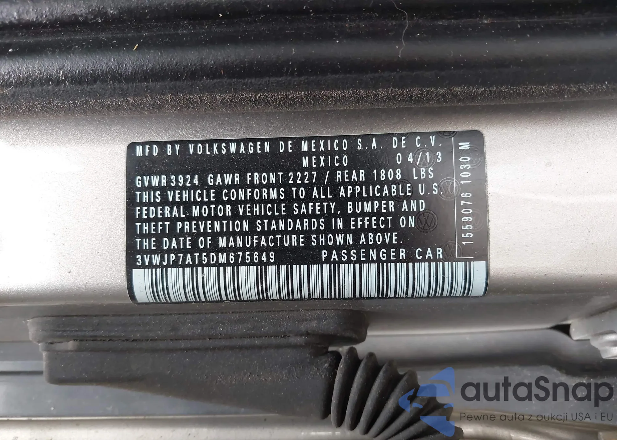 • VIN 3VWJP7AT5DM675649
