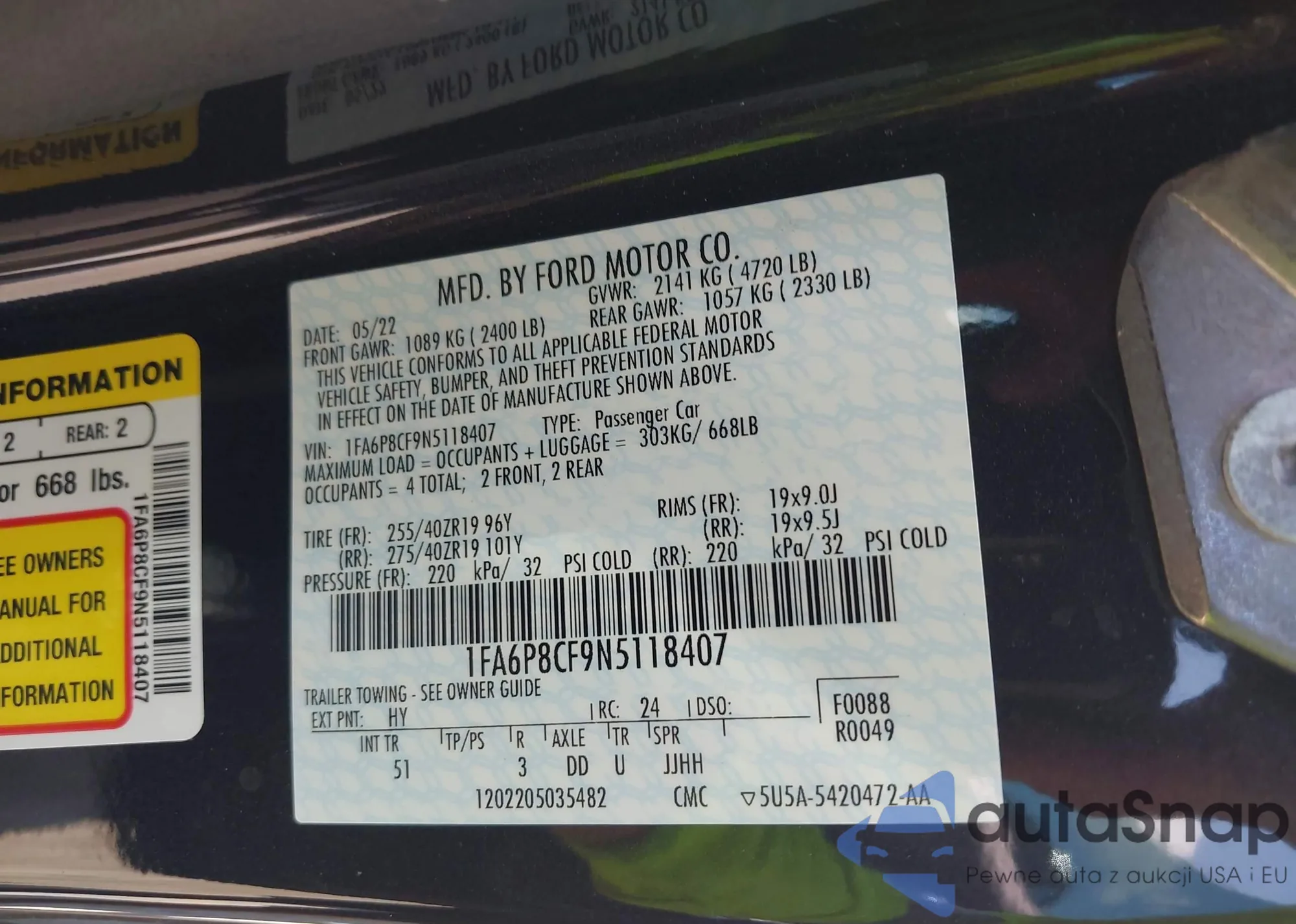 • VIN 1FA6P8CF9N5118407