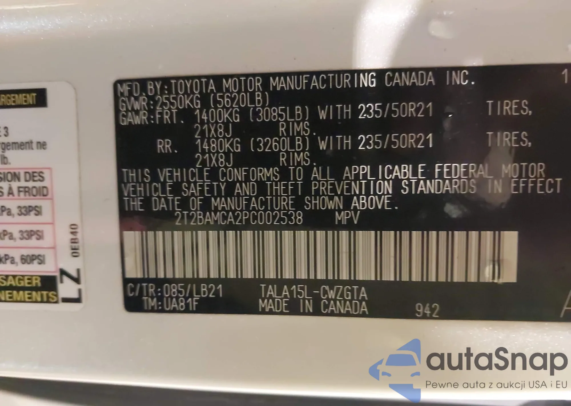 • VIN 2T2BAMCA2PC002538