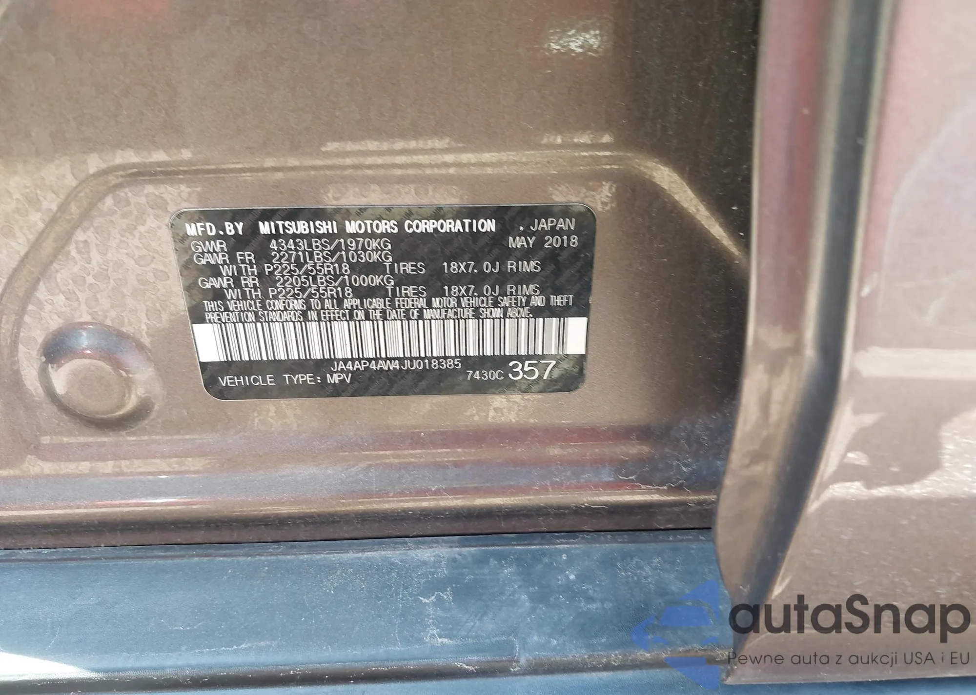 LOT: 41868875 VIN: JA4AP4AW4JU018385