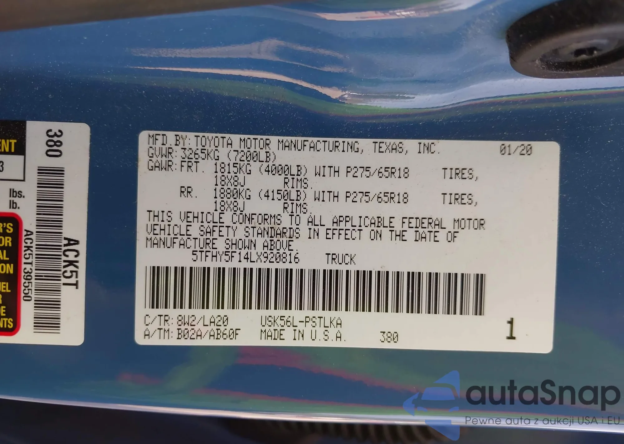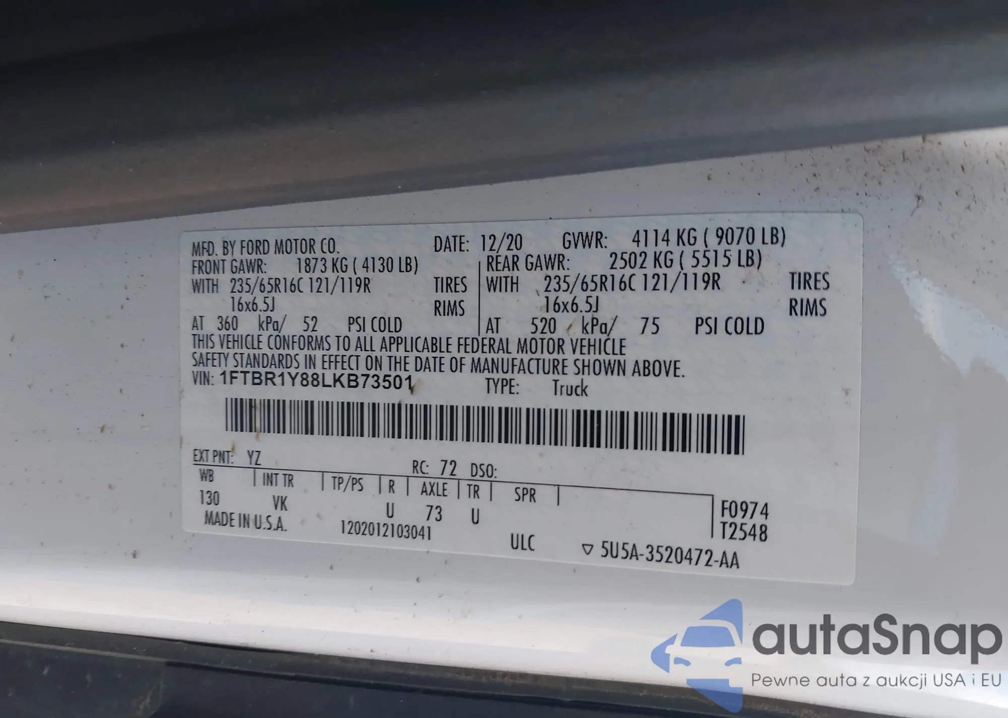 • VIN 1FTBR1Y88LKB73501