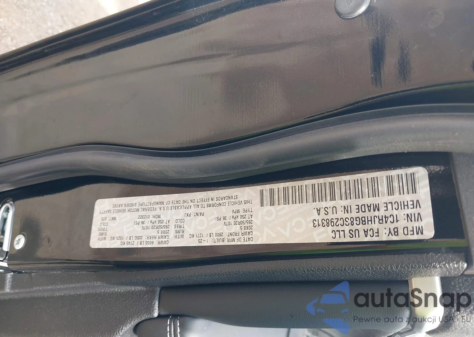 • VIN 1C4RJHBG8SC298313