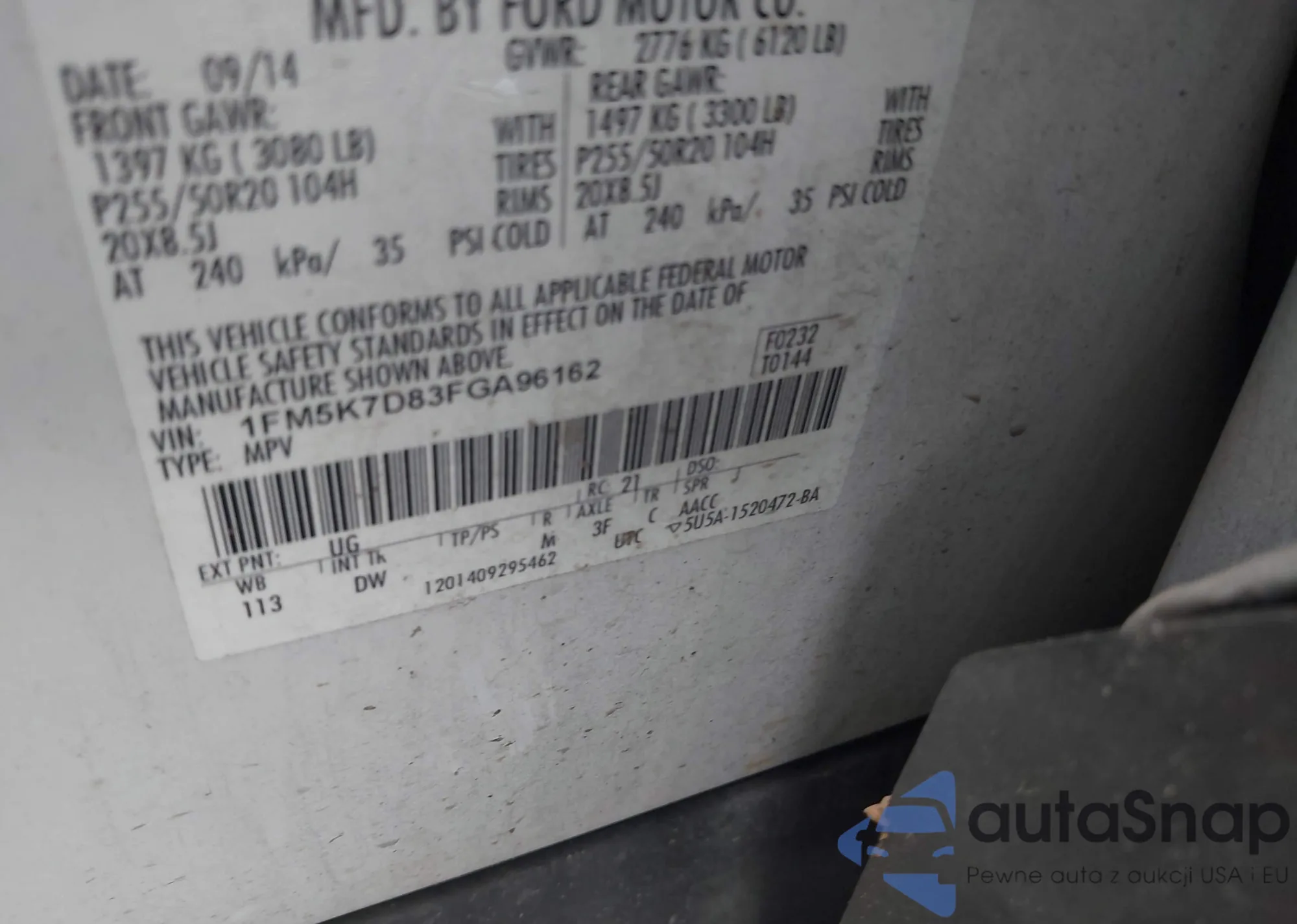 LOT: 42225606 VIN: 1FM5K7D83FGA96162