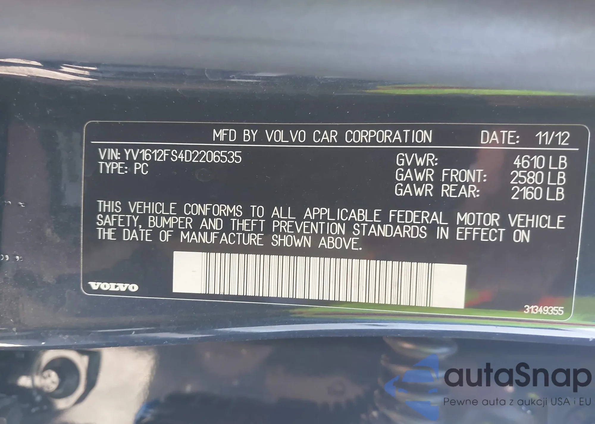 • VIN YV1612FS4D2206535