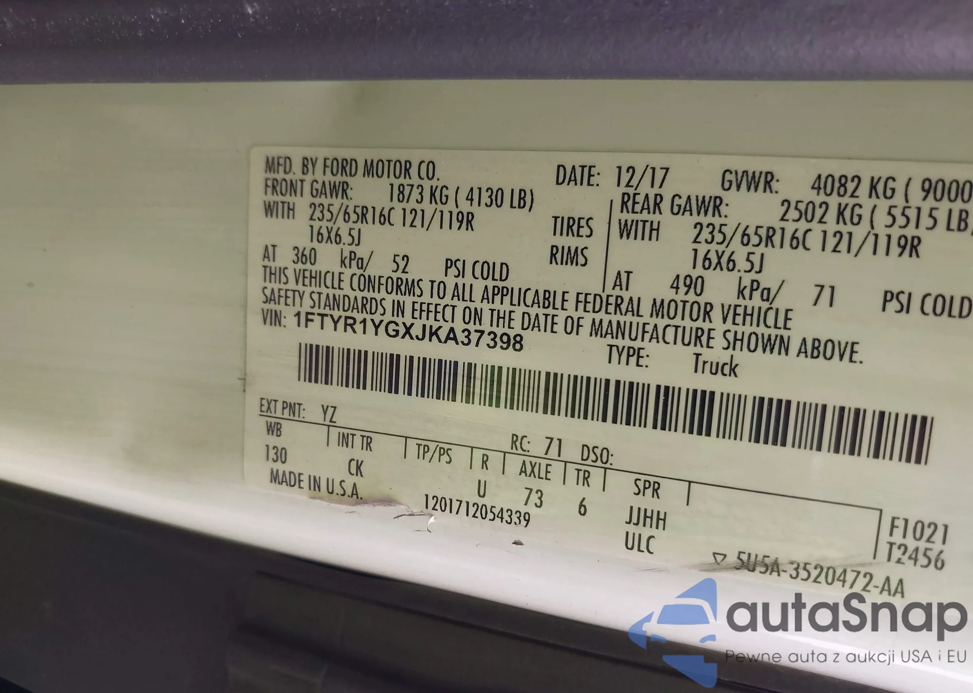 • VIN 1FTYR1YGXJKA37398