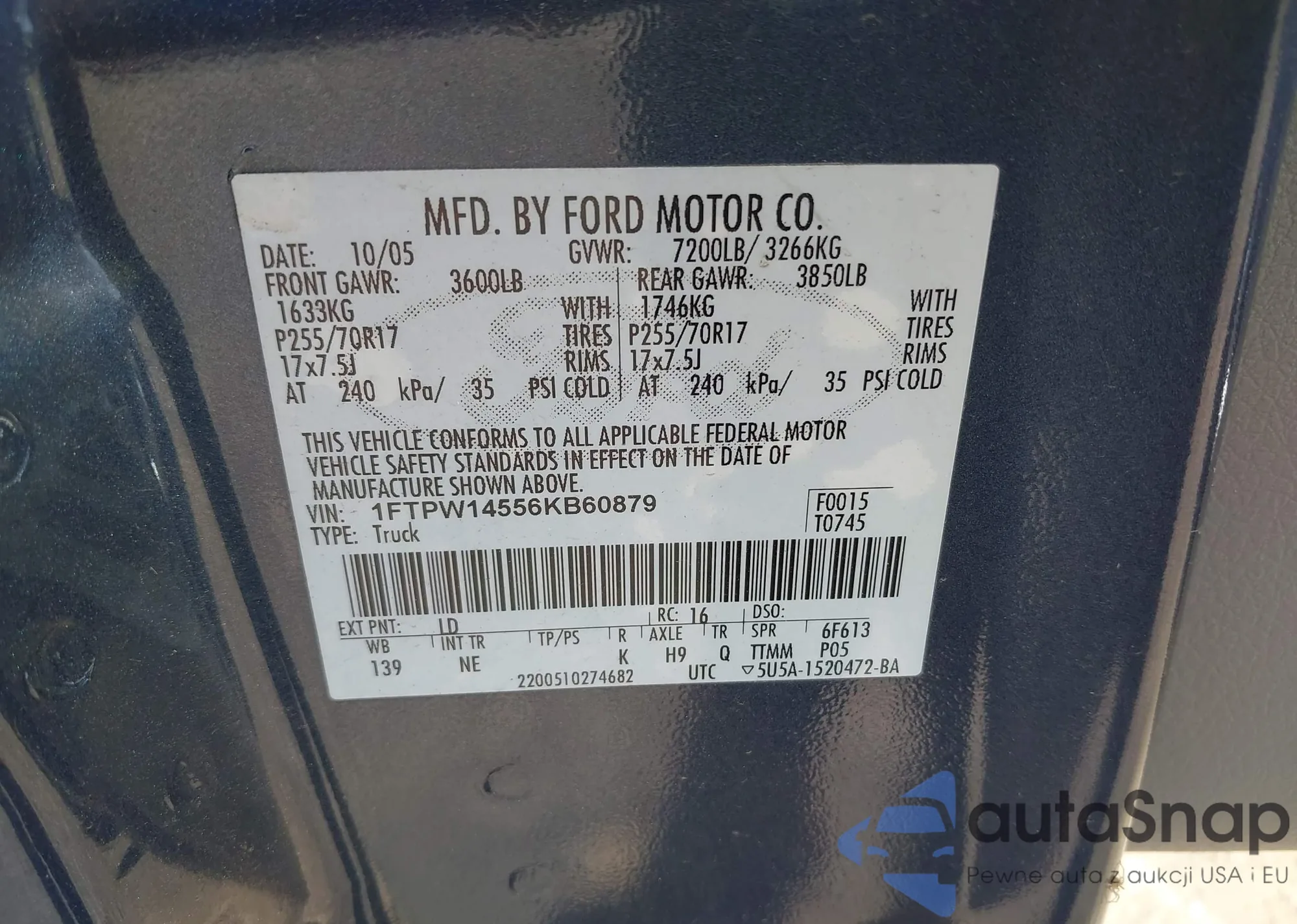 • VIN 1FTPW14556KB60879