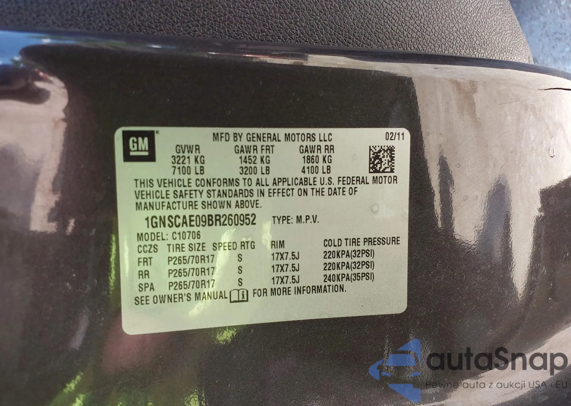 LOT: 42229481 VIN: 1GNSCAE09BR260952