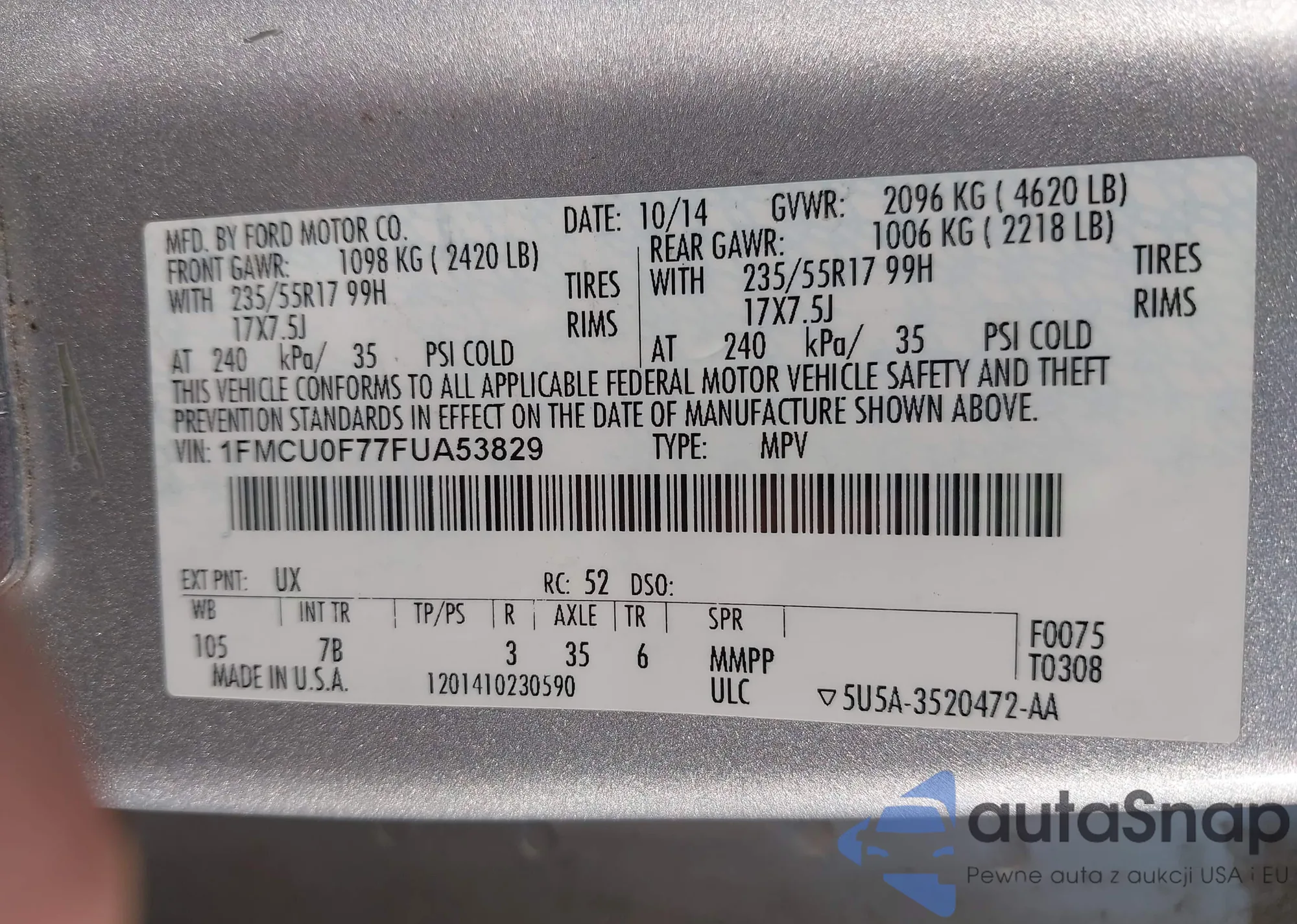 • VIN 1FATP8UH8J5142453