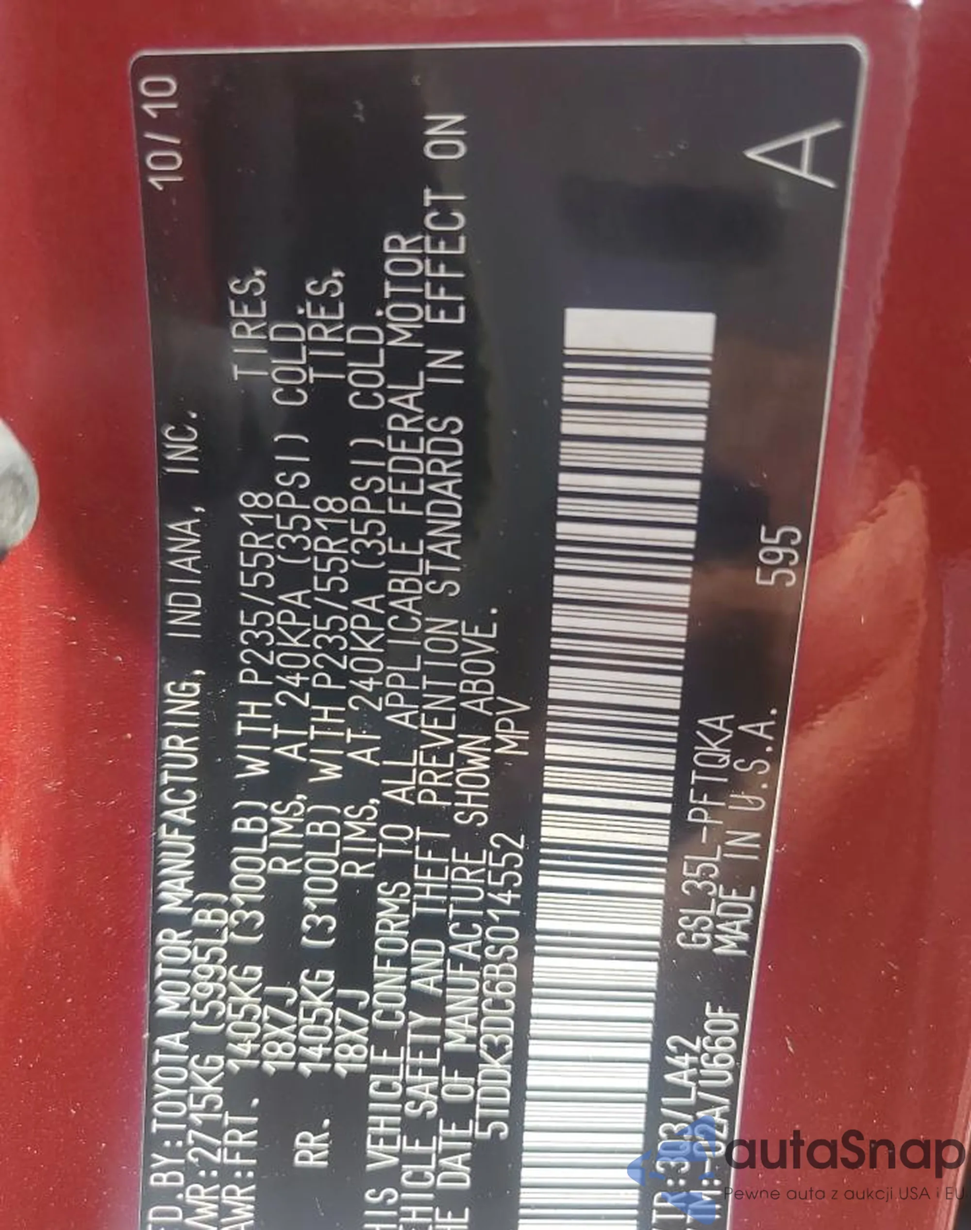 • VIN WP0AB2A75BL060508