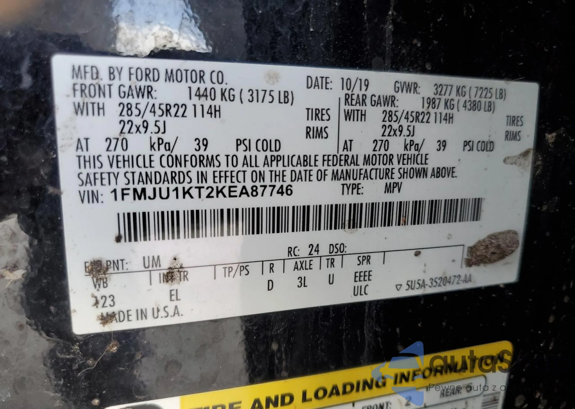 LOT: 47860455 VIN: 1FMJU1KT2KEA87746