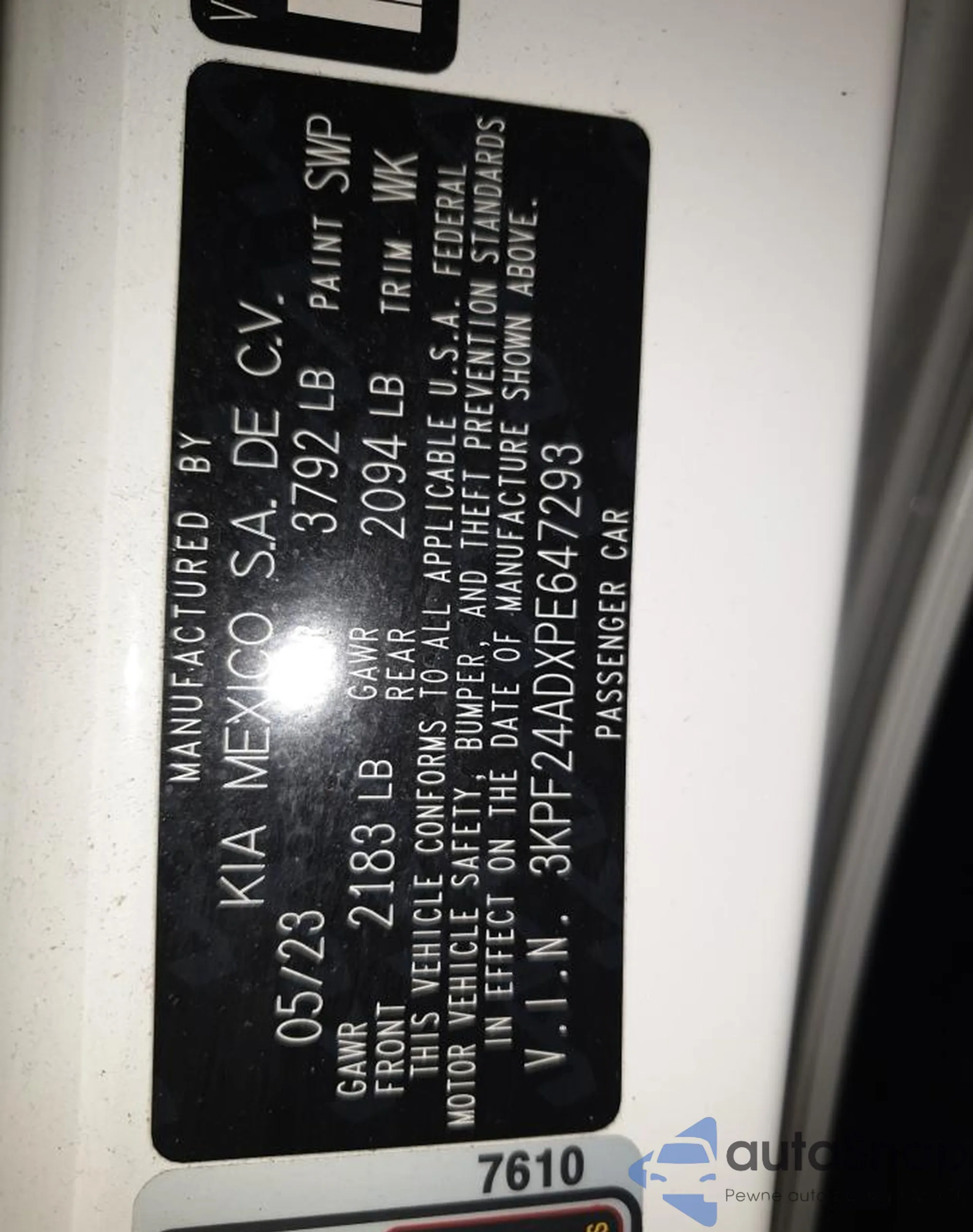 • VIN 3KPF24ADXPE647293