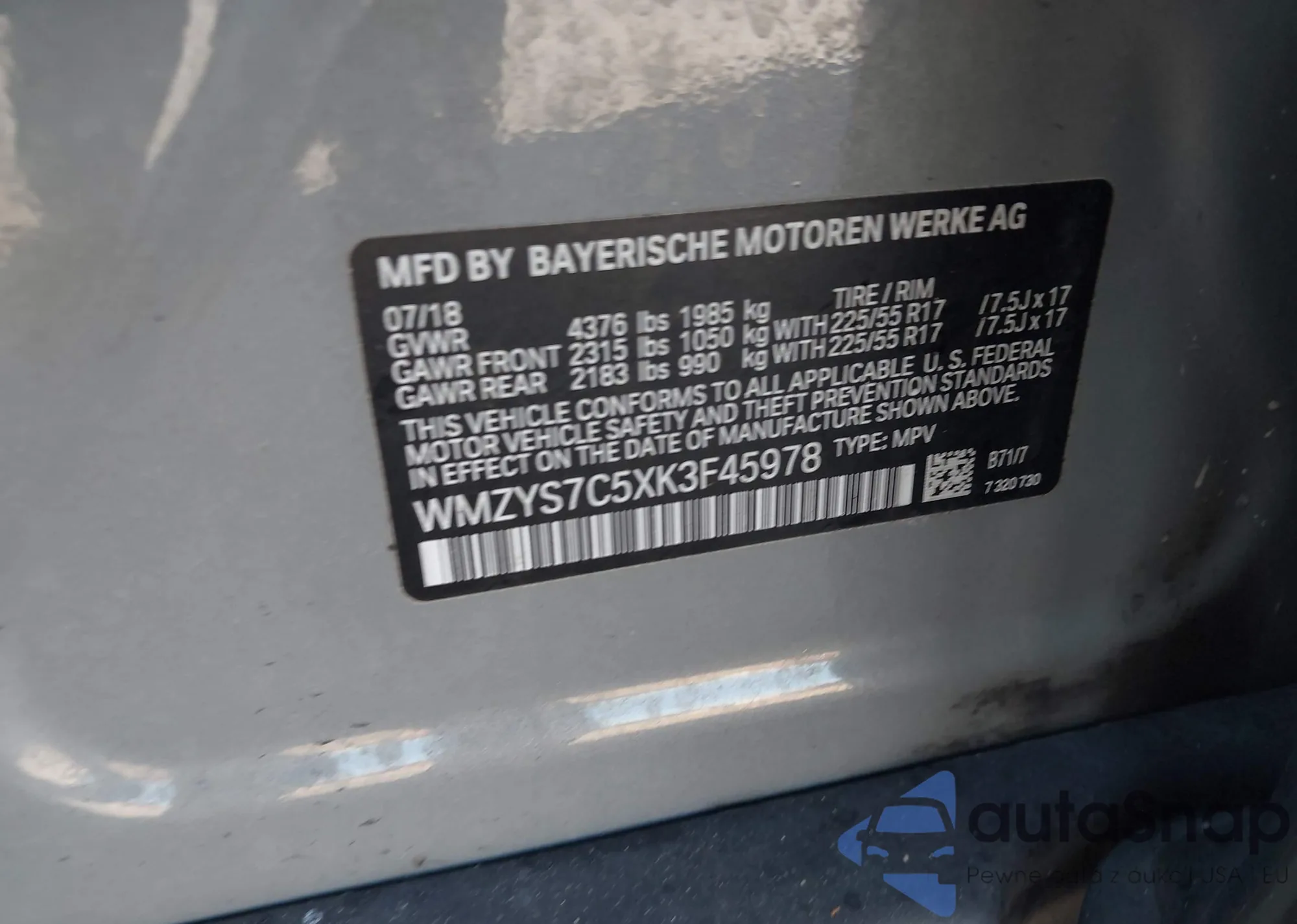 LOT: 41912677 VIN: WBY2Z2C51GV676132