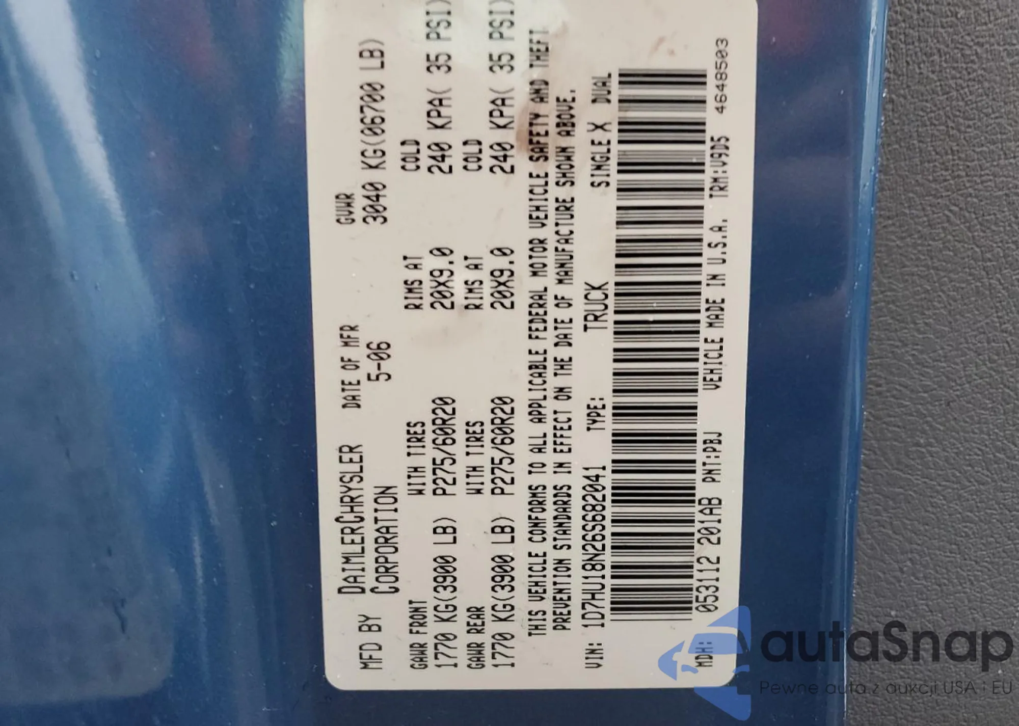 LOT: 52439005 VIN: 1D7HU18N26S682041