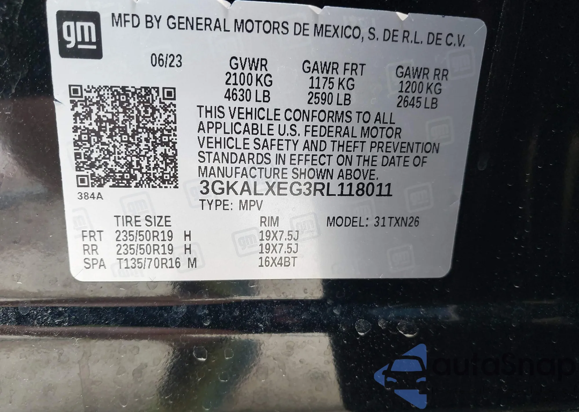 • VIN 3GKALXEG3RL118011