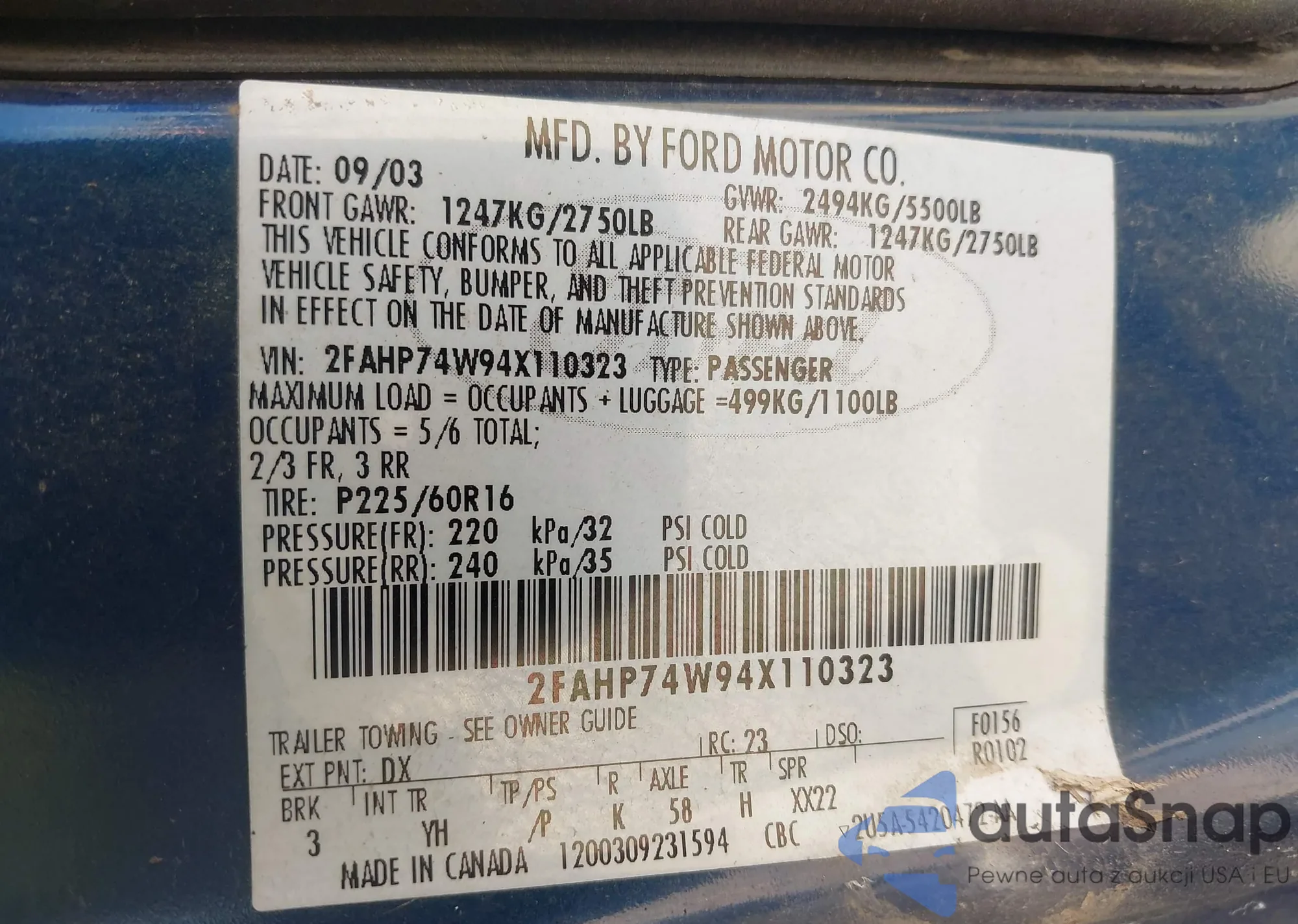 • VIN 2FAHP74W94X110323