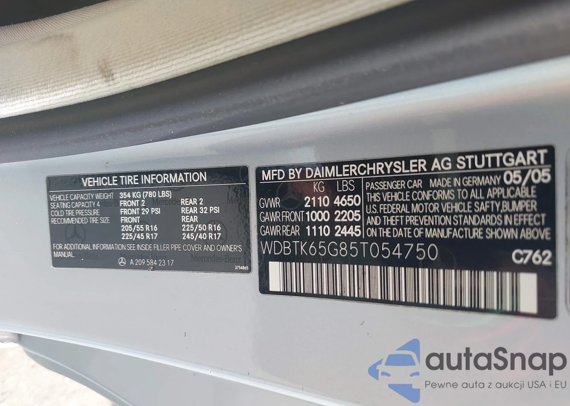 LOT: 42264538 VIN: WDBTK65G85T054750