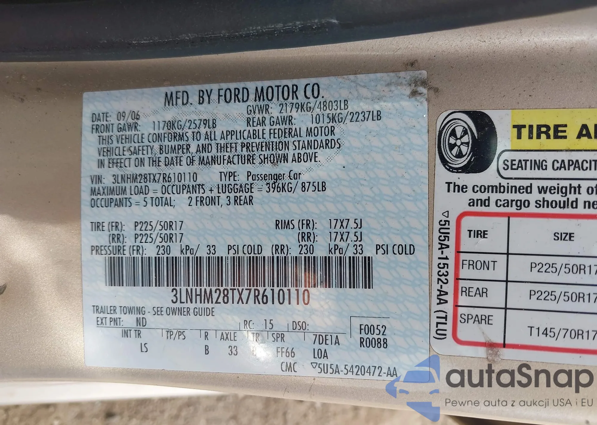 2007 Lincoln Mkz z USA, uszkodzony, nr VIN 3LNHM28TX7R610110