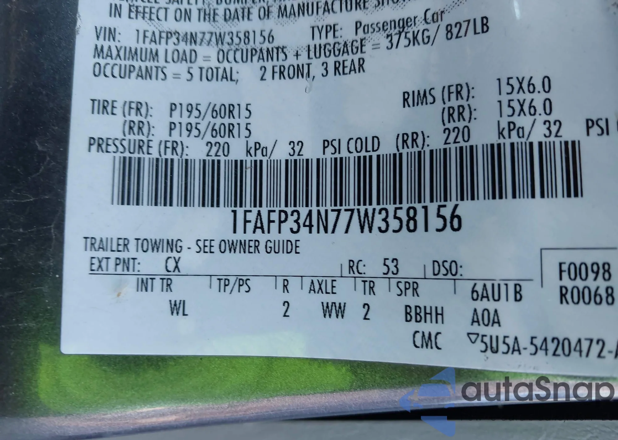 • VIN 4T1CA1AB5MU006094