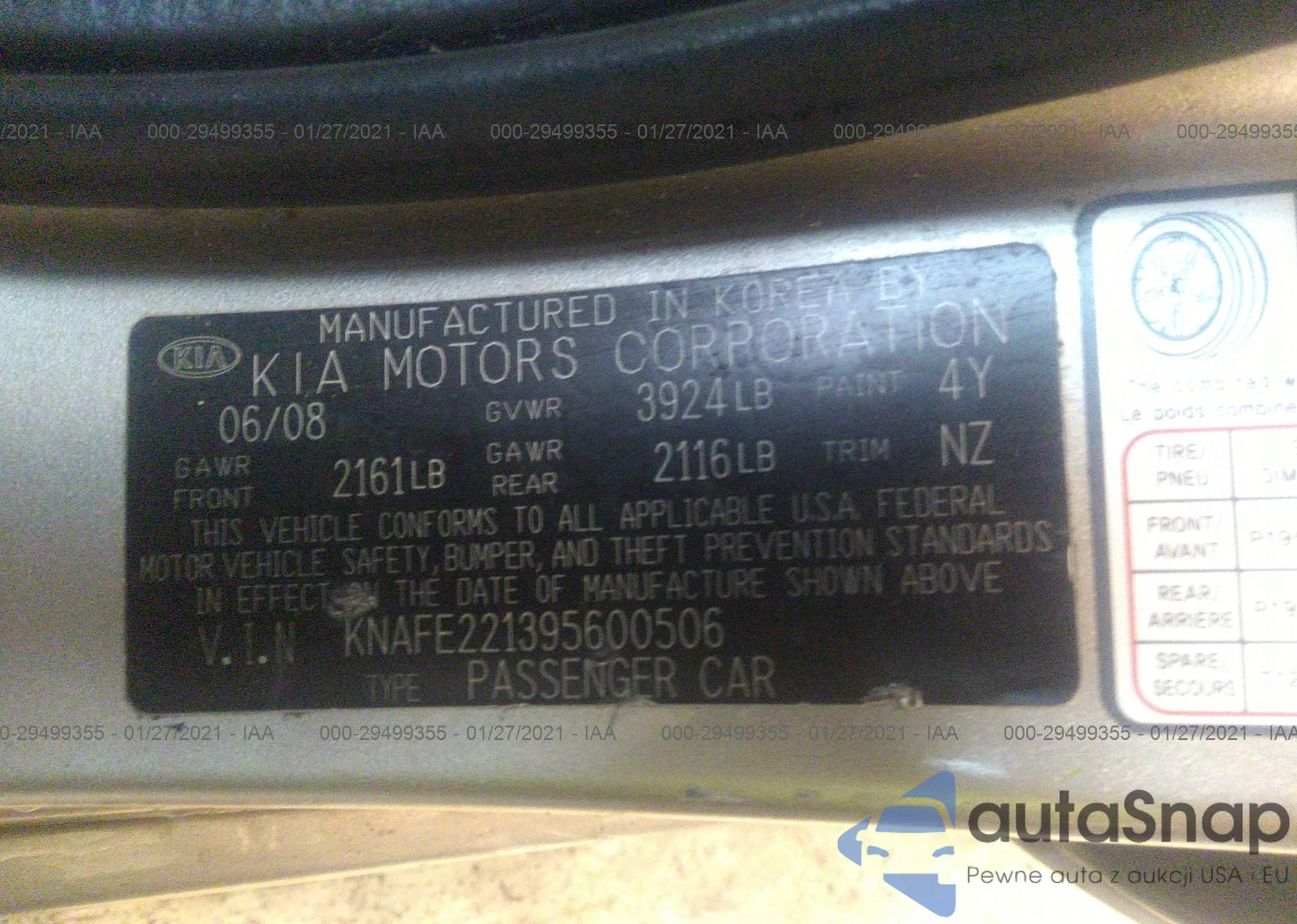 LOT: 29499355 VIN: KNAFE221395600506