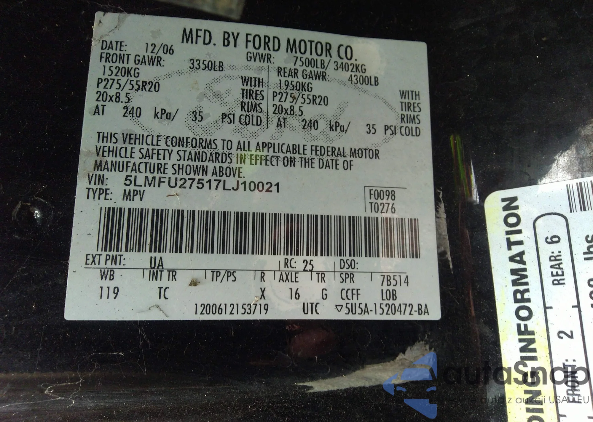 • VIN 5LMFU27517LJ10021