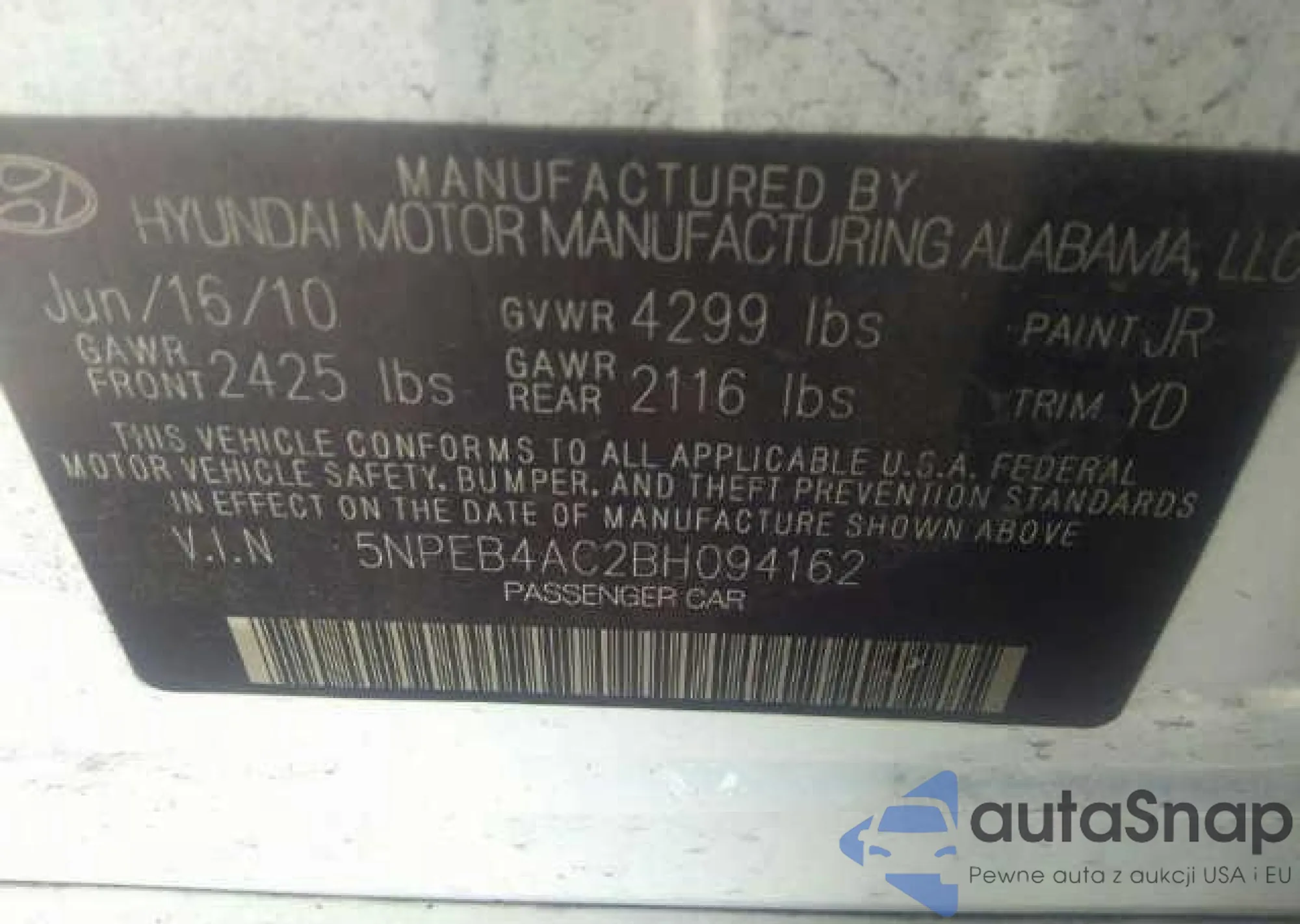 • VIN 5NPEB4AC2BH094162