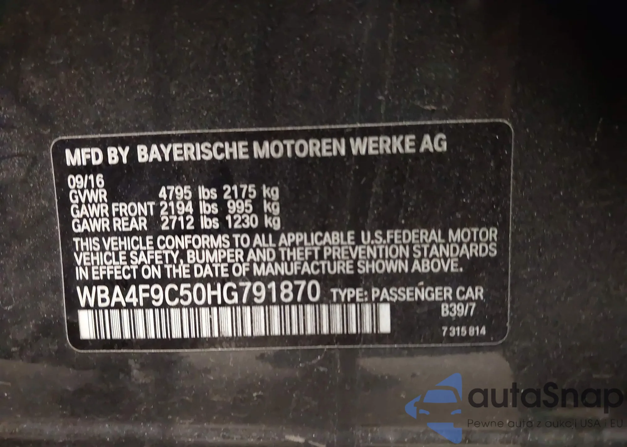 • VIN WBA4F9C50HG791870