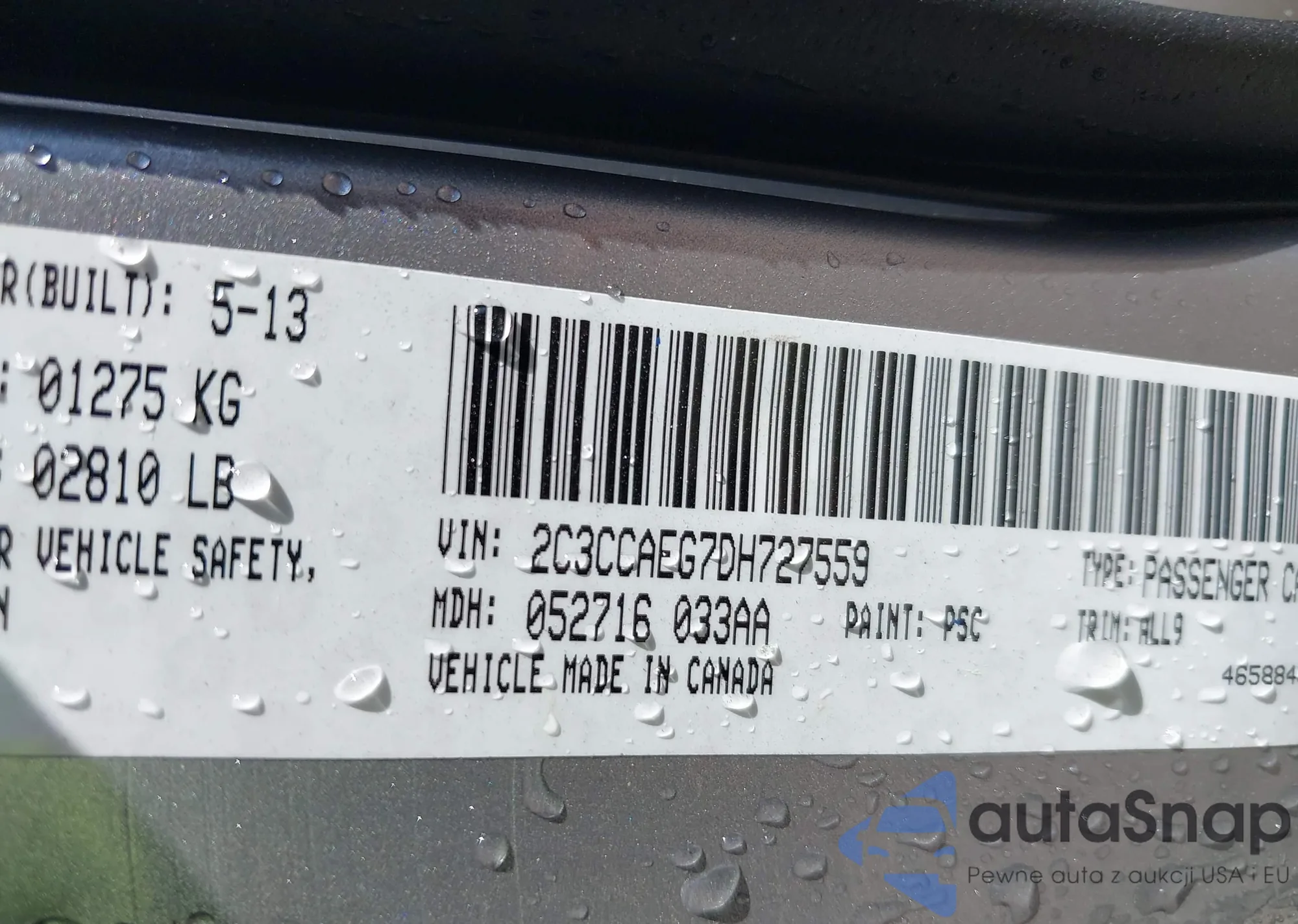 LOT: 41990806 VIN: 2C3CCAEG7DH727559
