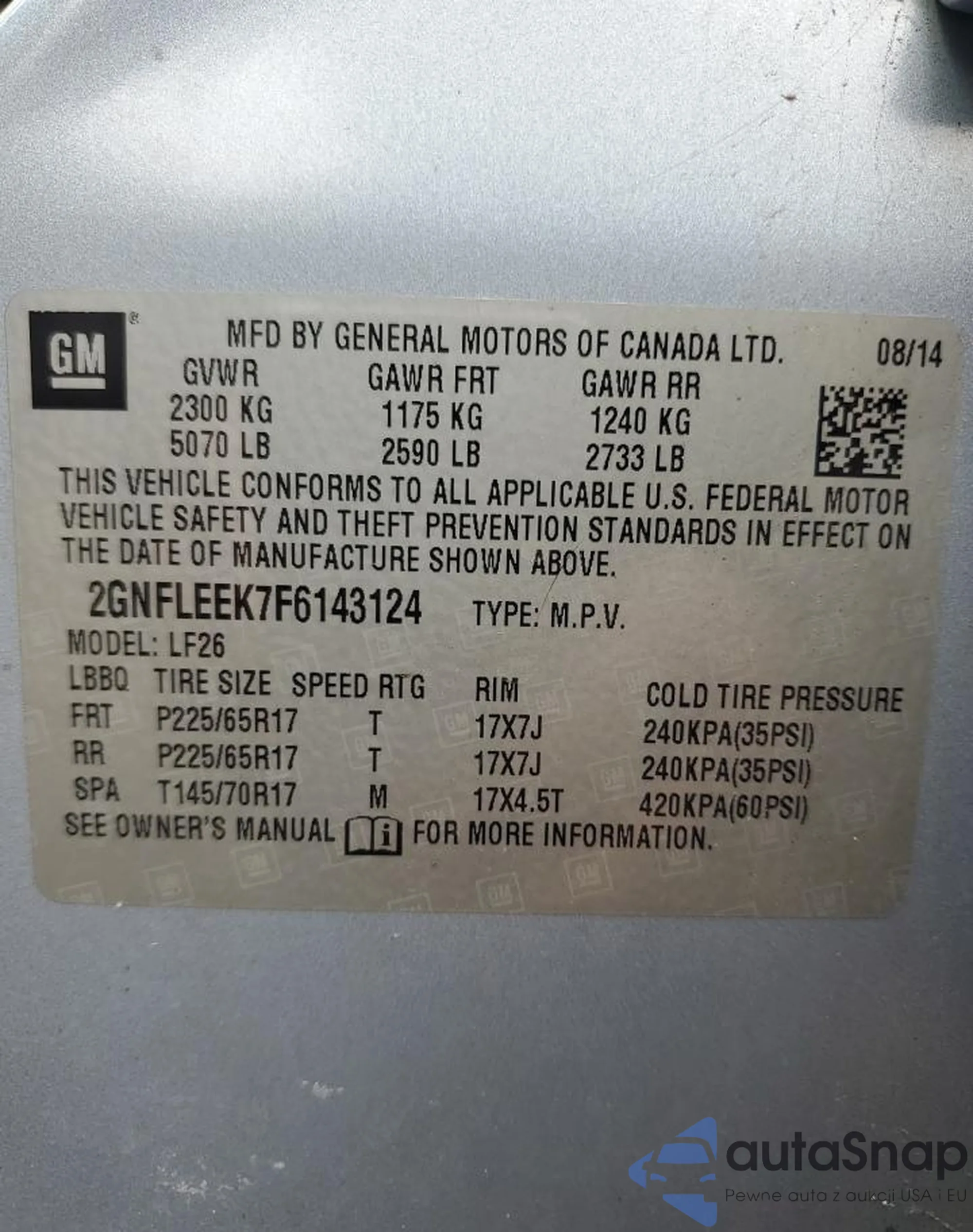 • VIN 2GNFLEEK7F6143124