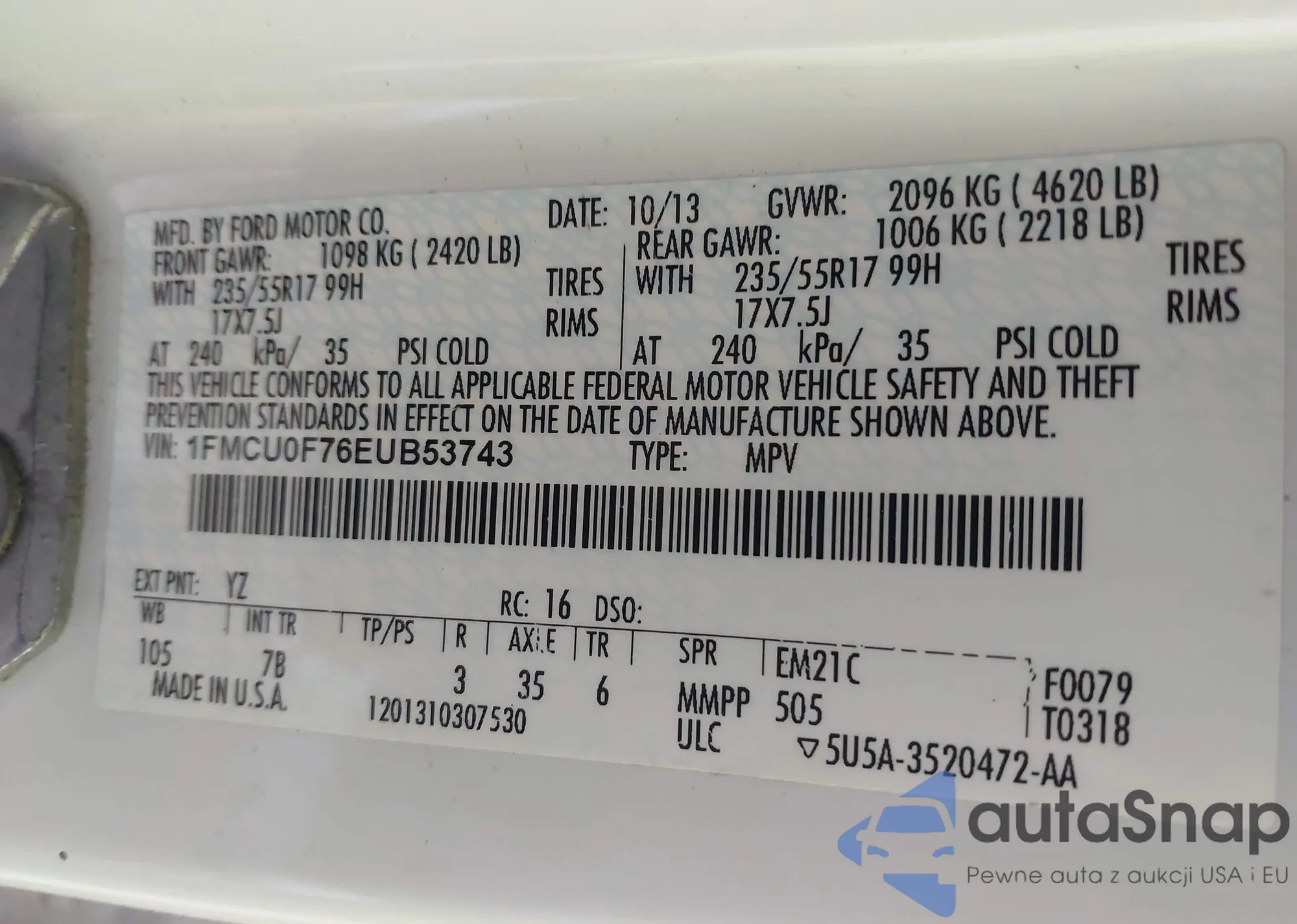 • VIN 1FMCU0F76EUB53743