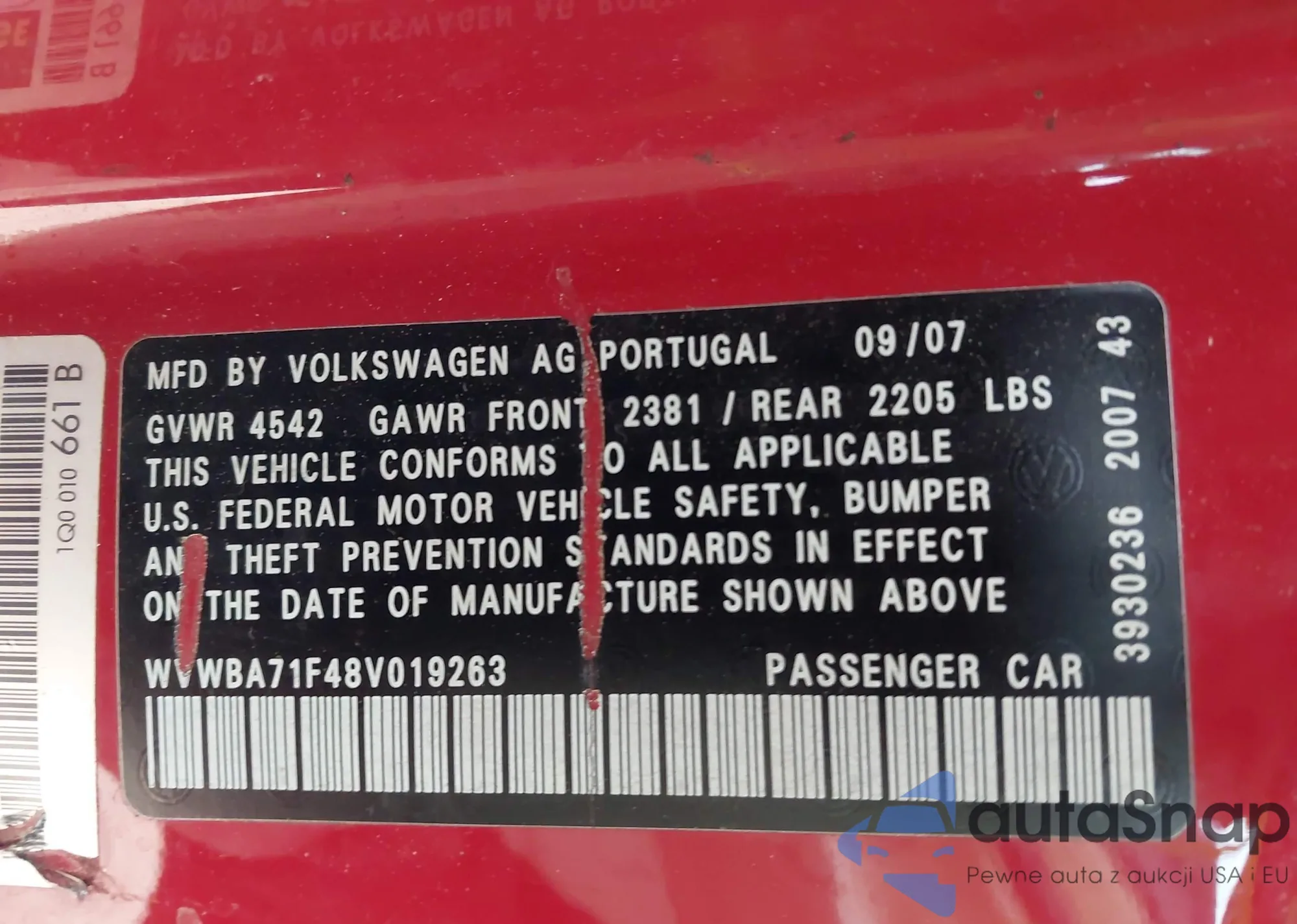 LOT: 42107370 VIN: WVWBA71F48V019263