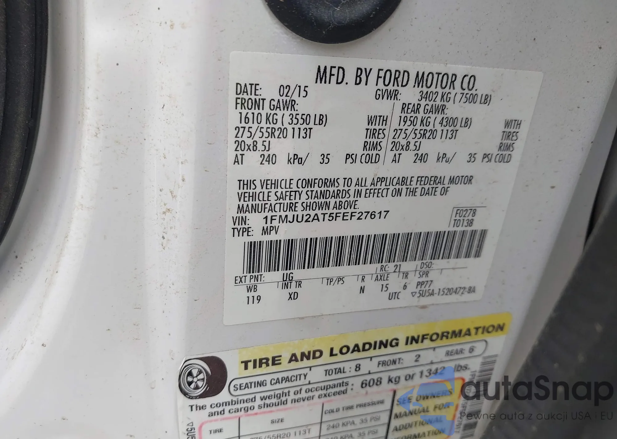 LOT: 42120462 VIN: 1FMJU2AT5FEF27617