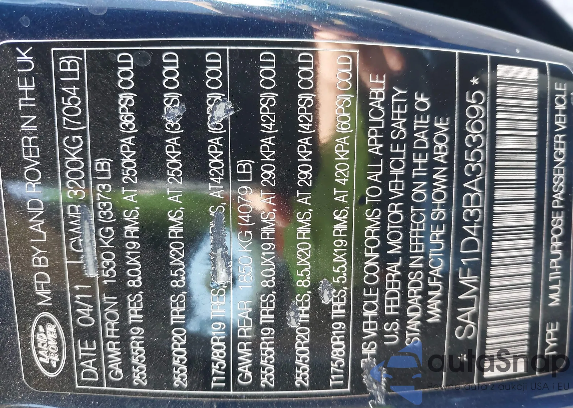 • VIN SALMF1D43BA353695