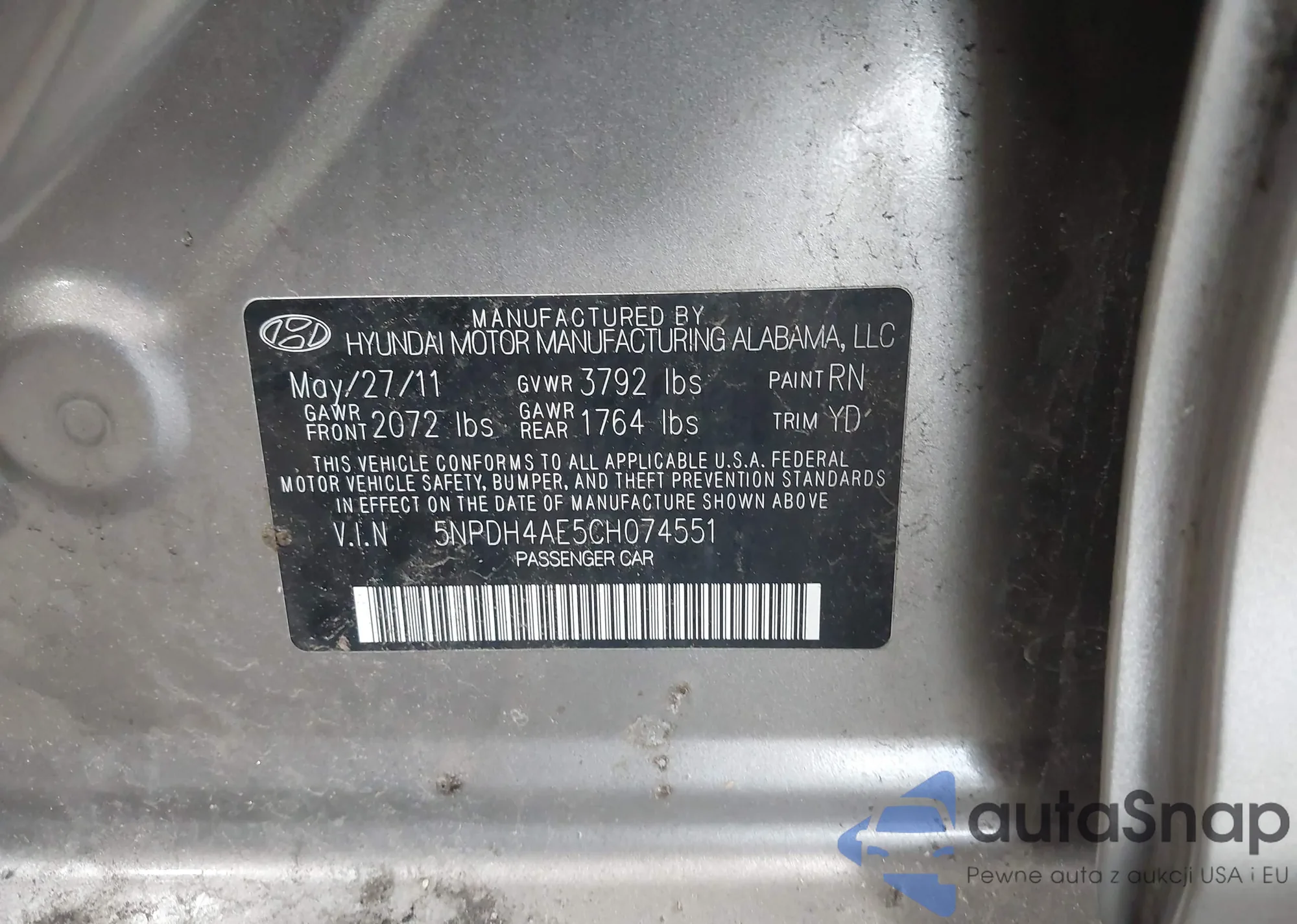 LOT: 42134638 VIN: 5NPDH4AE5CH074551