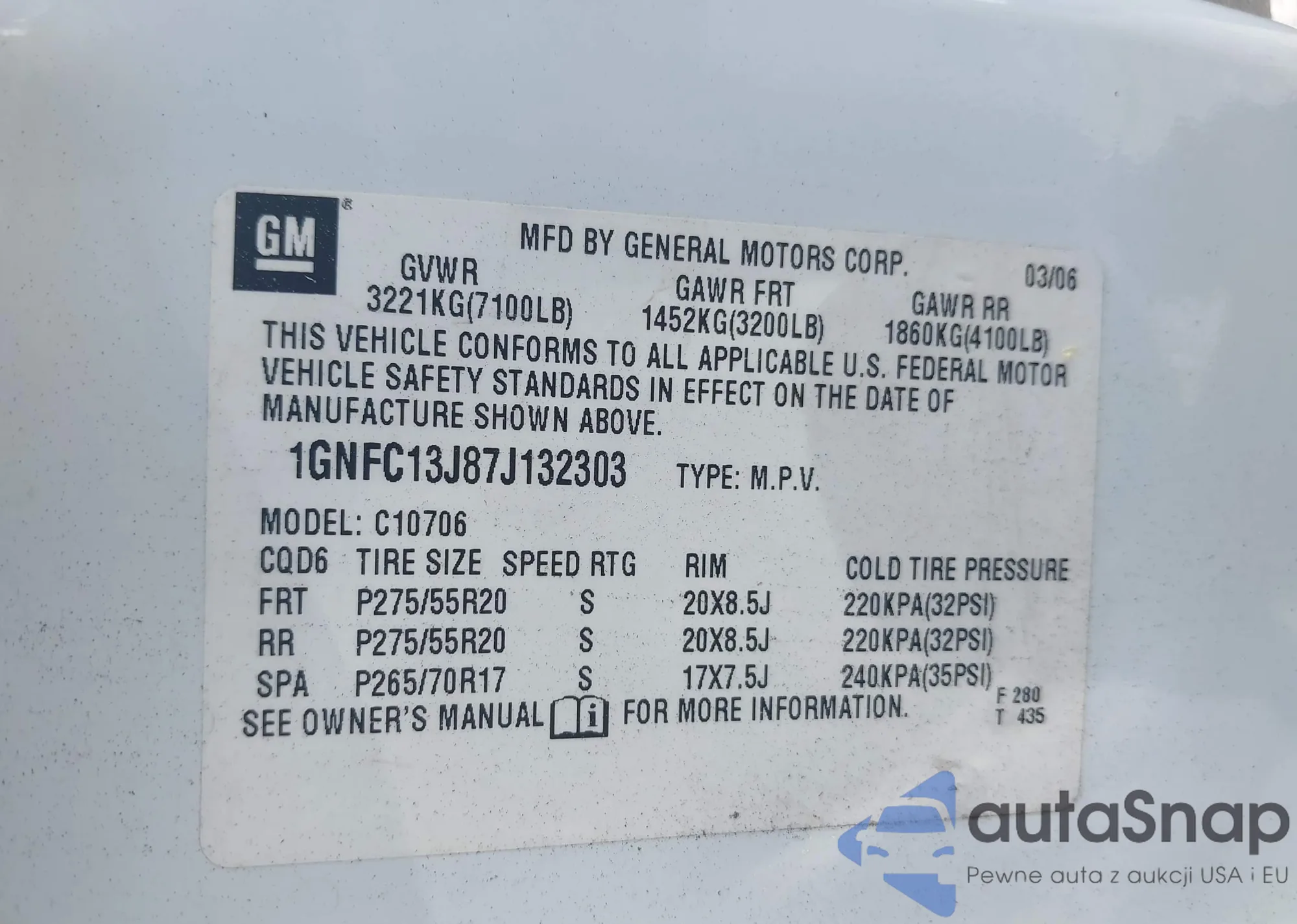 • VIN 1GNFC13J87J132303