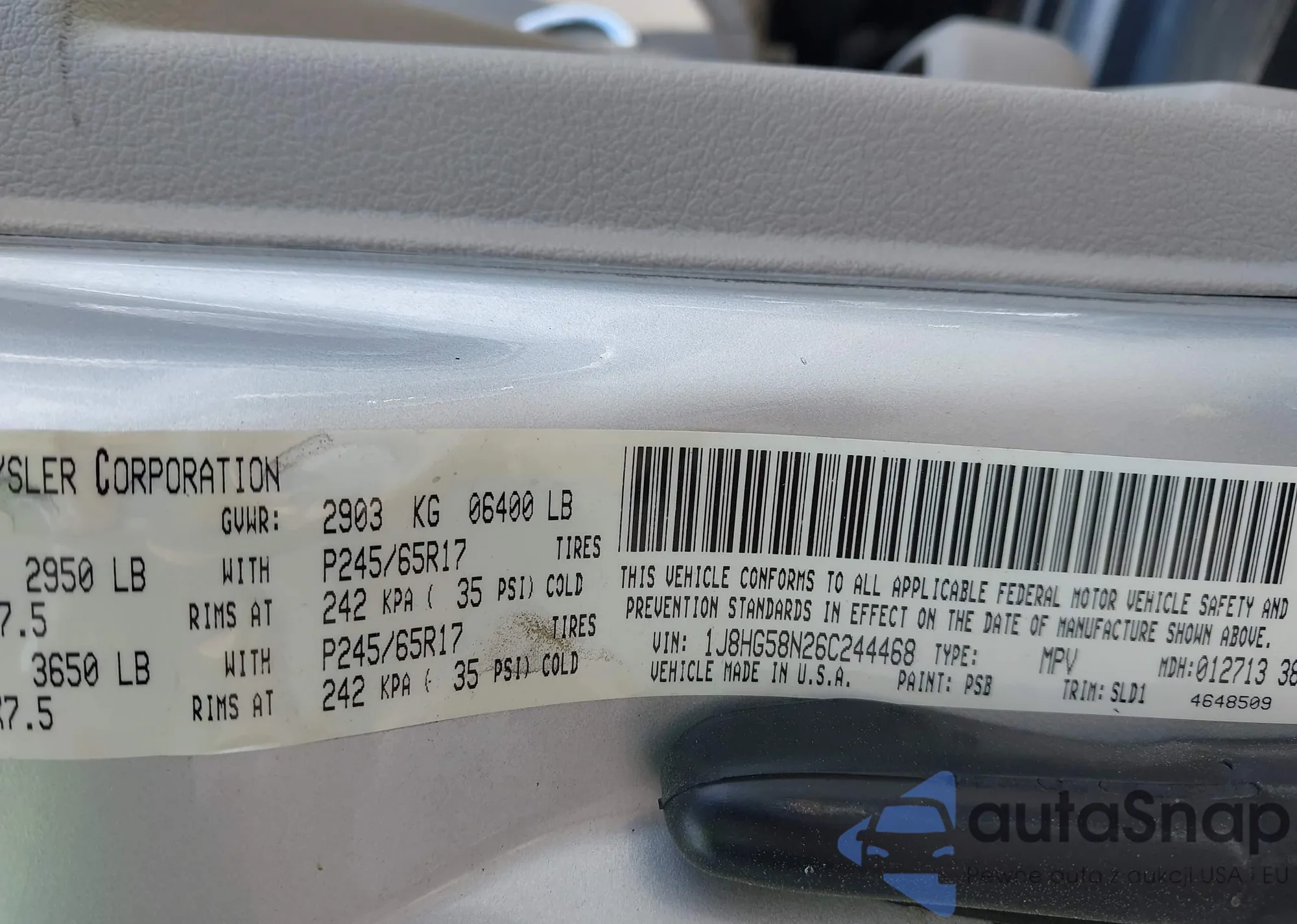 • VIN 1J8HG58N26C244468