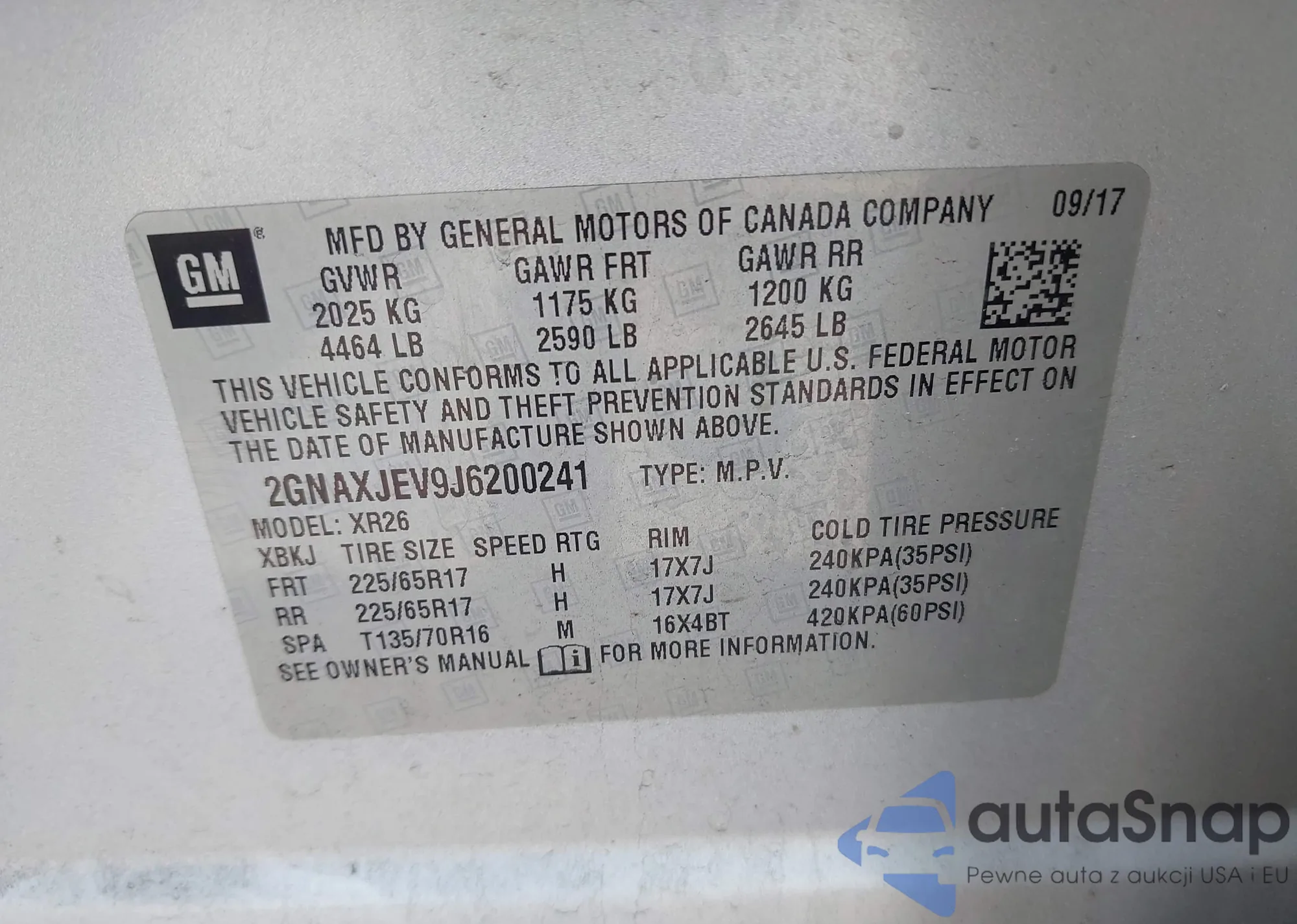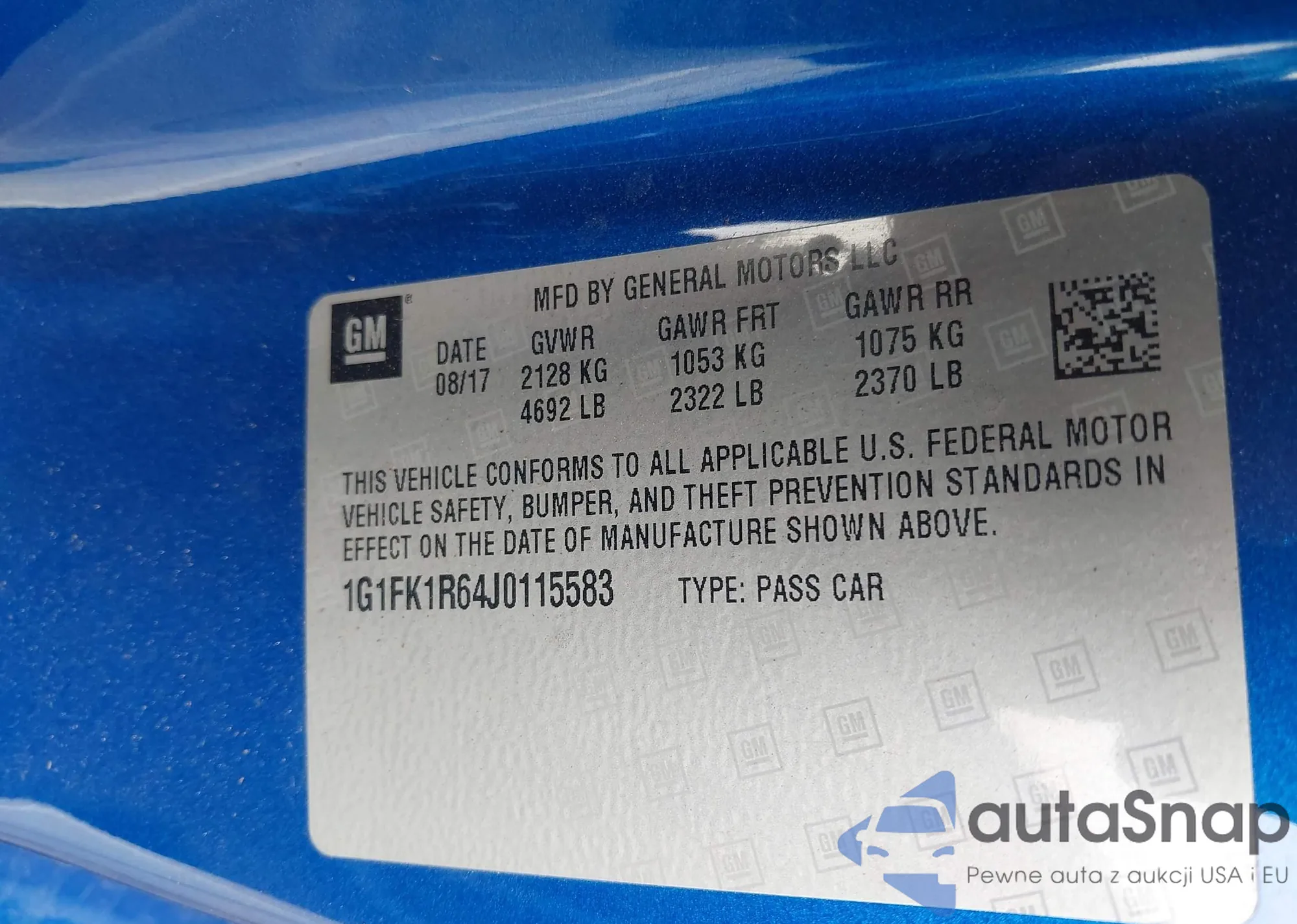 LOT: 41998052 VIN: 1G1FK1R64J0115583