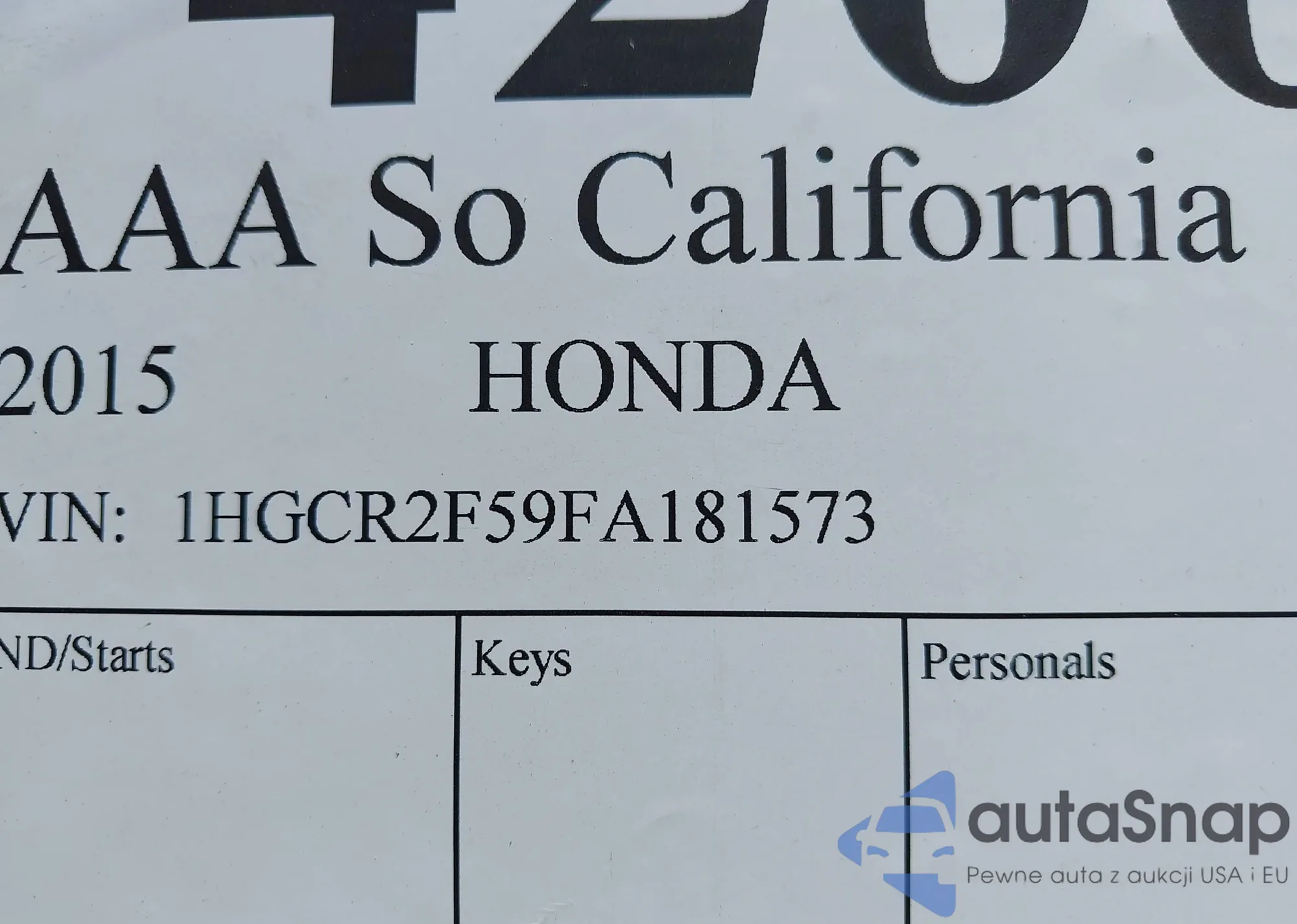 LOT: 42002825 VIN: 1HGCR2F59FA181573
