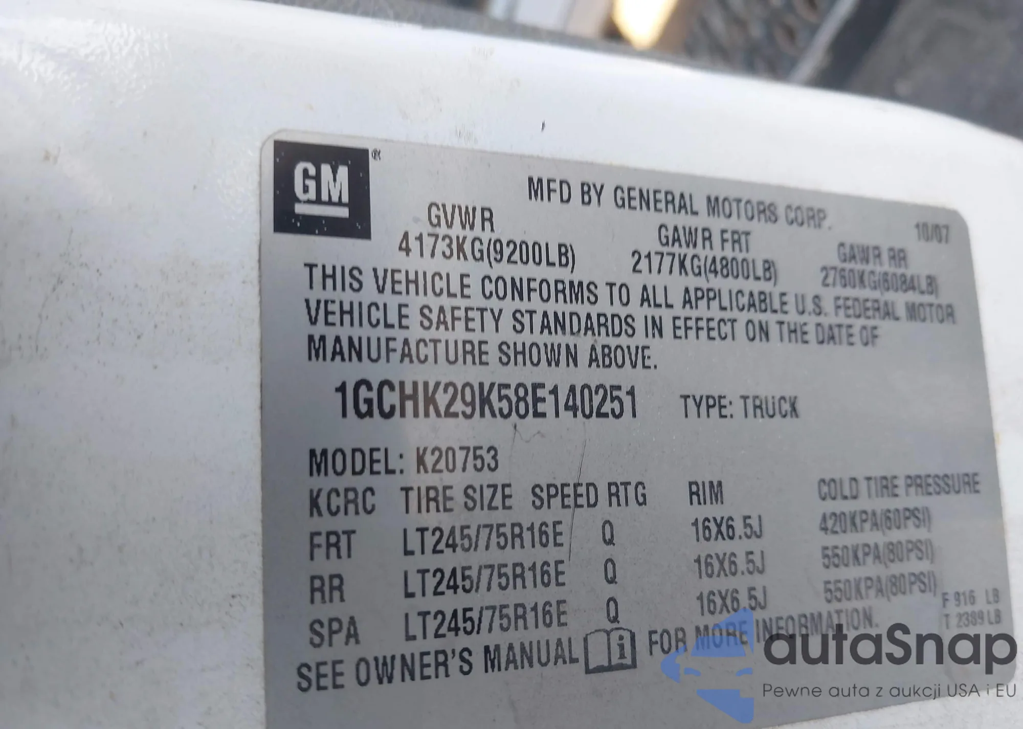 LOT: 41645454 VIN: 1GCHK29K58E140251