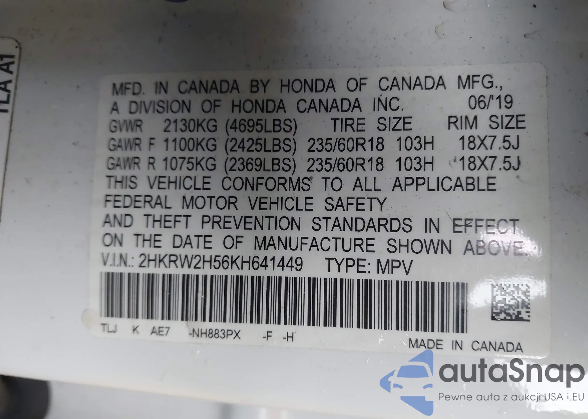• VIN 2HGFC2F75JH504611