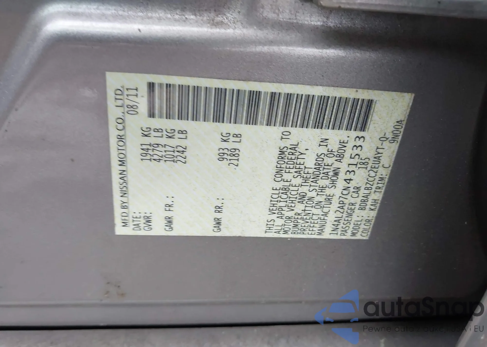 • VIN JN8AS5MV6DW139199