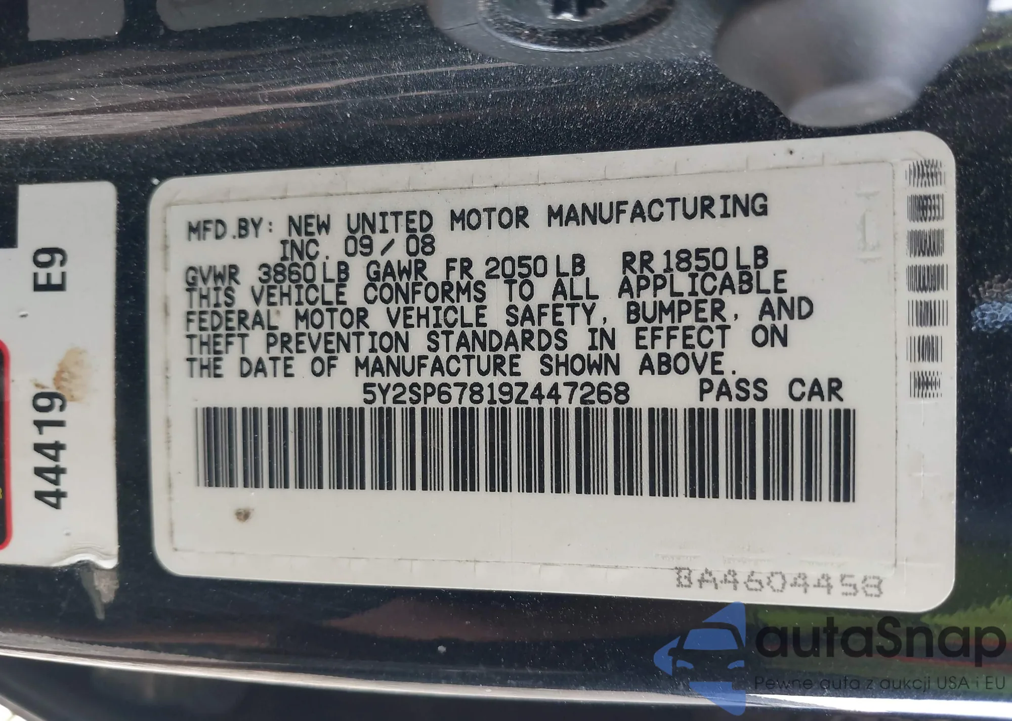 • VIN 5Y2SP67819Z447268