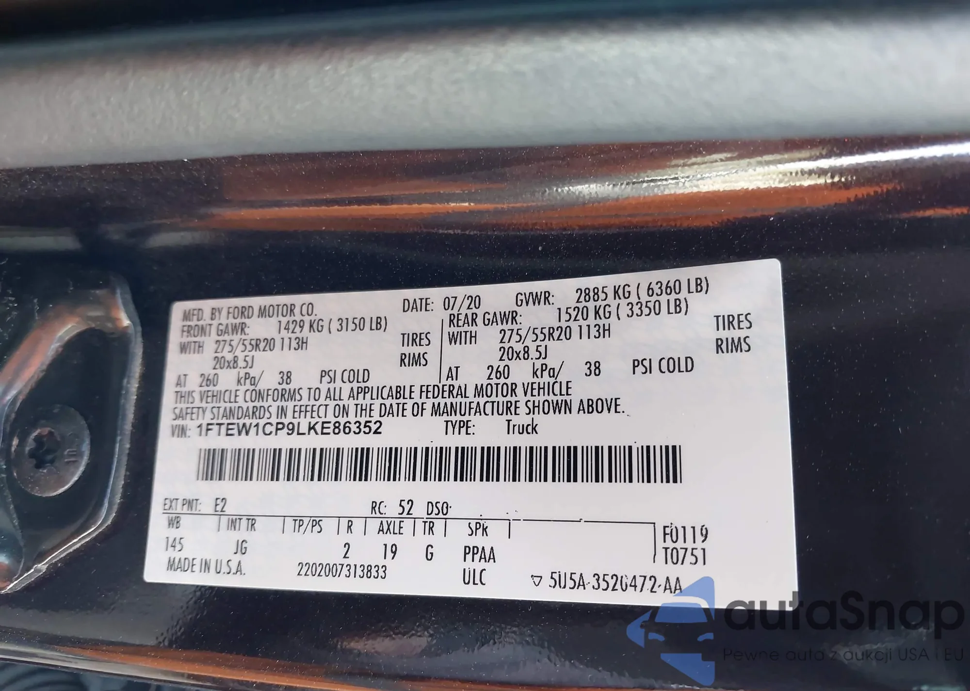 • VIN 1FTEW1CP9LKE86352