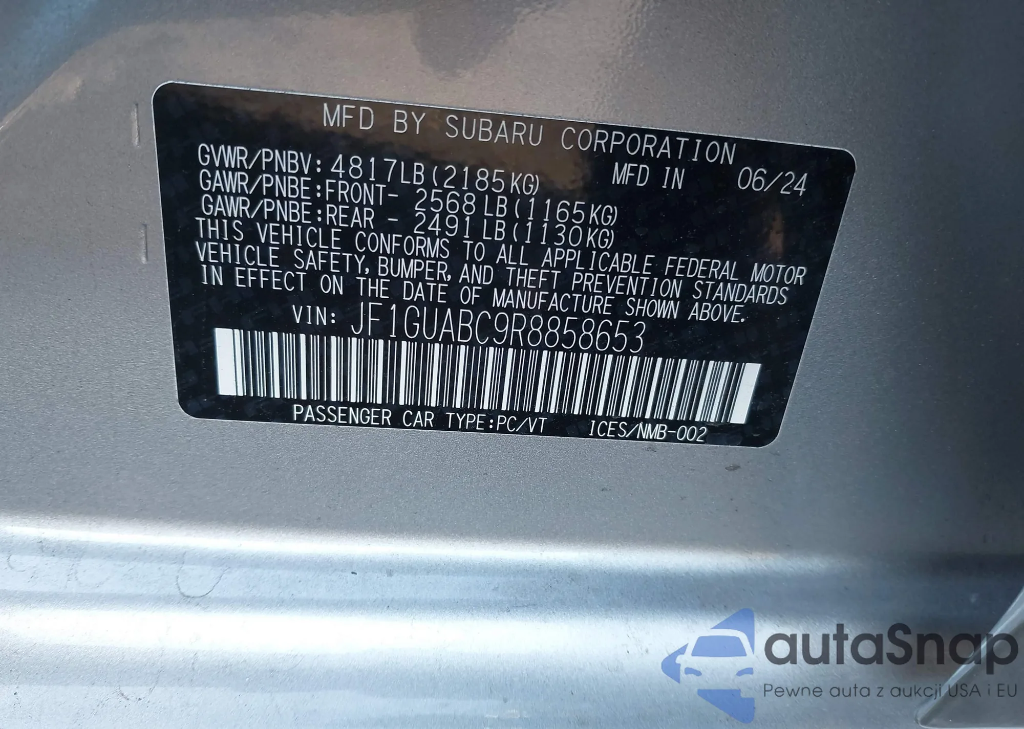 2024 Subaru Impreza Base 5-Door z USA, uszkodzony, nr VIN JF1GUABC9R8858653