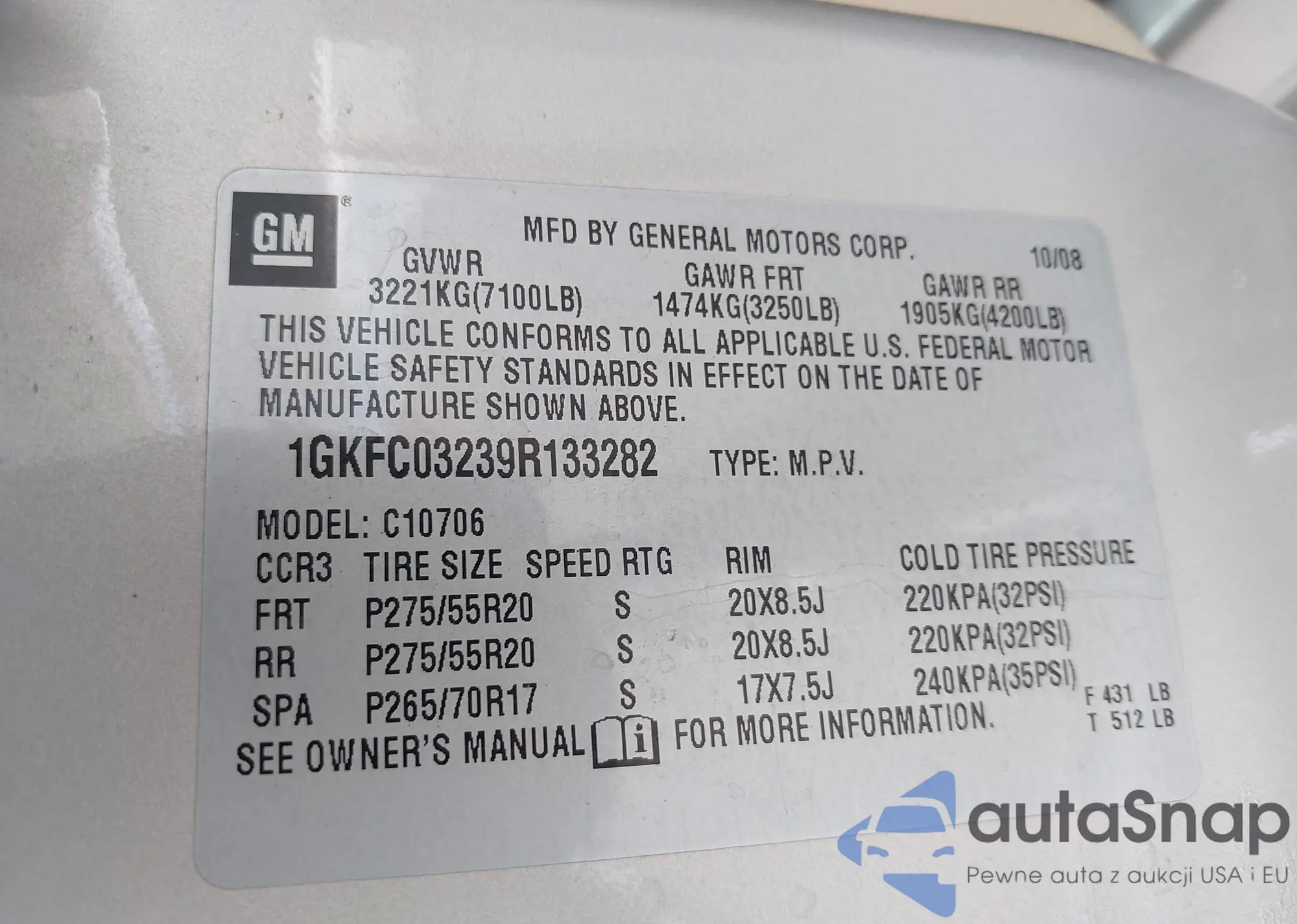 LOT: 42074182 VIN: 7SAYGDEE7PF702051
