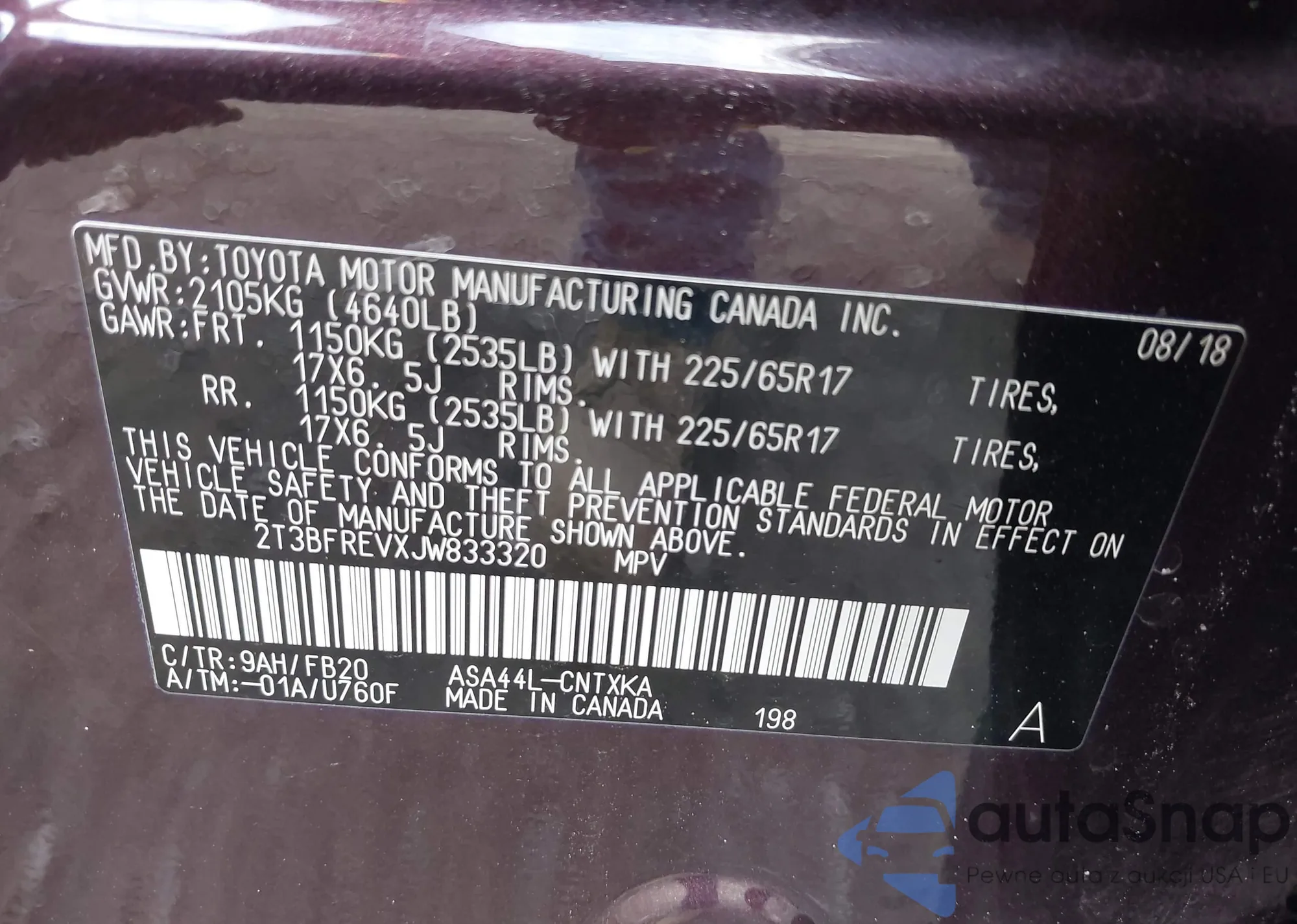 LOT: 42203820 VIN: WA1LAAF70JD033878